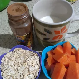 Jugo de naranja, papaya, avena, miel y manzana.