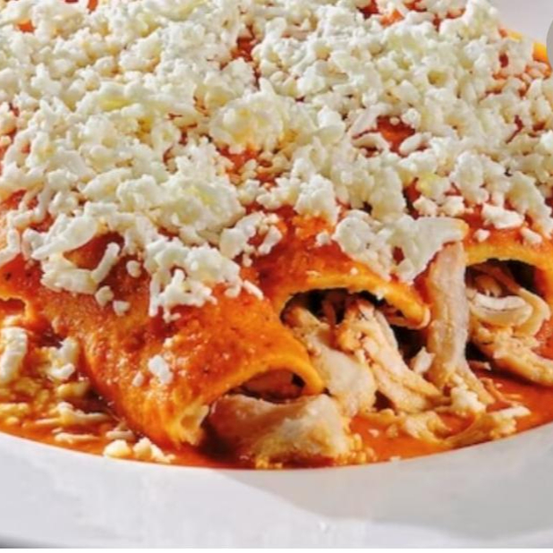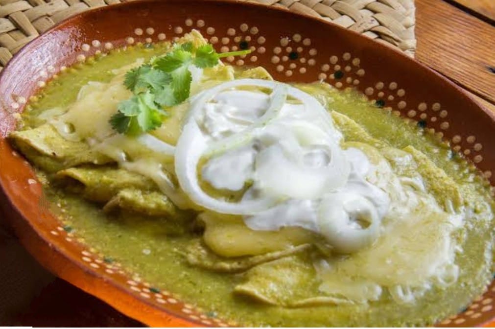 Ricas enchiladas acompañada con exquisita salsa verde con pollo o bistec, crema, queso y cebolla.