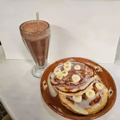 licuado a base de leche entera acompañado con platano y azucar con un poco de vainilla
