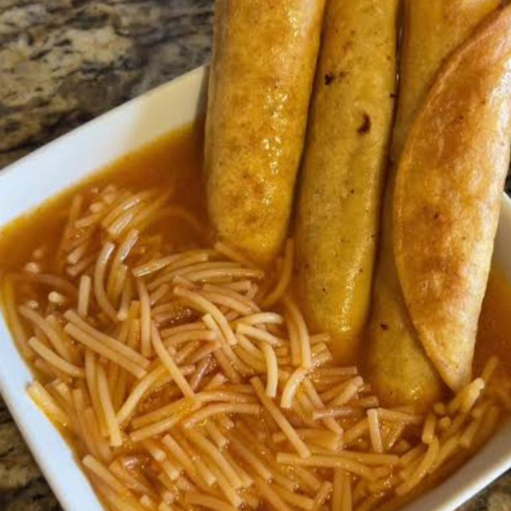 Tacos Dorados pollo, sopa fideo aguada y agua dia