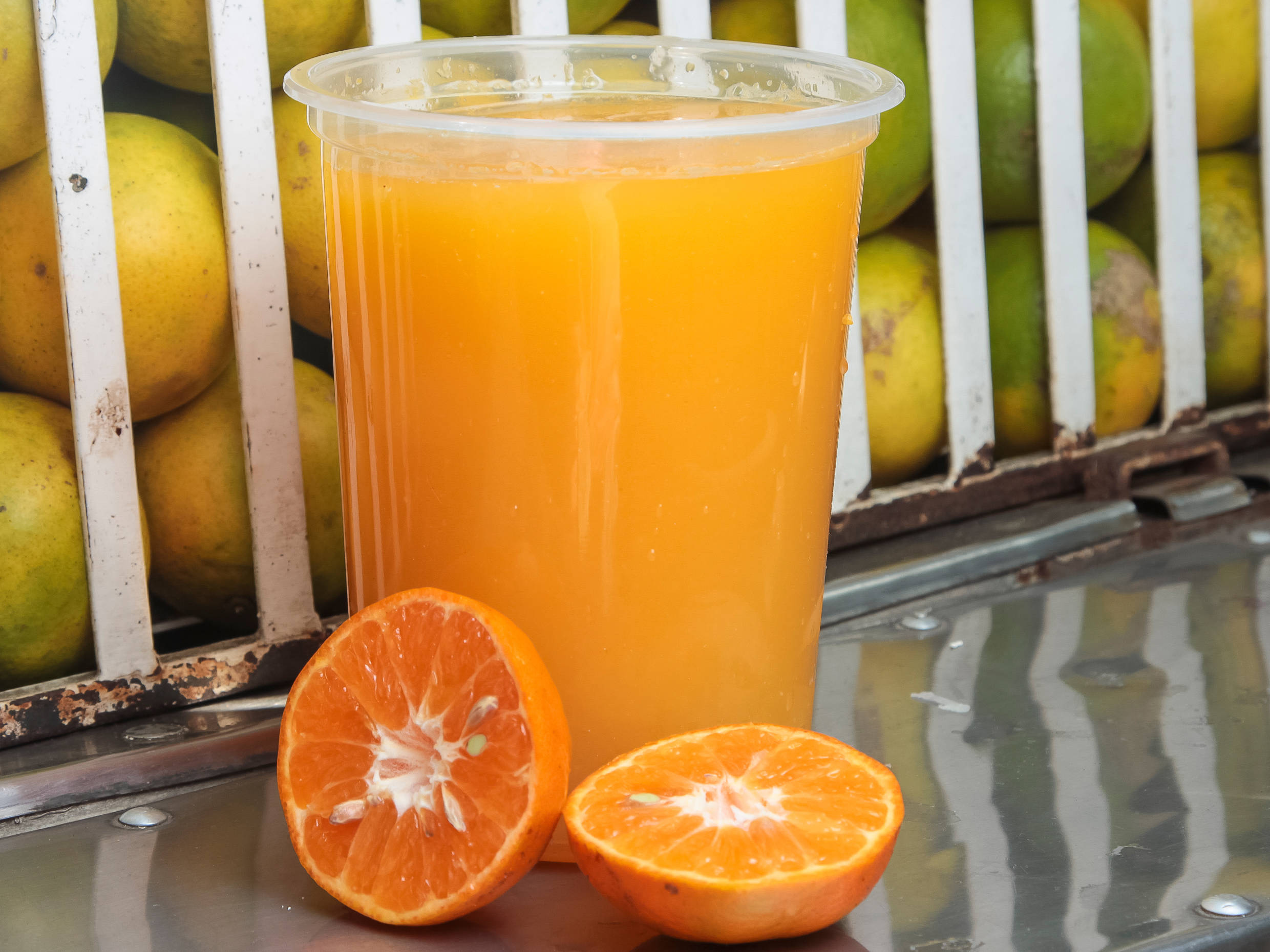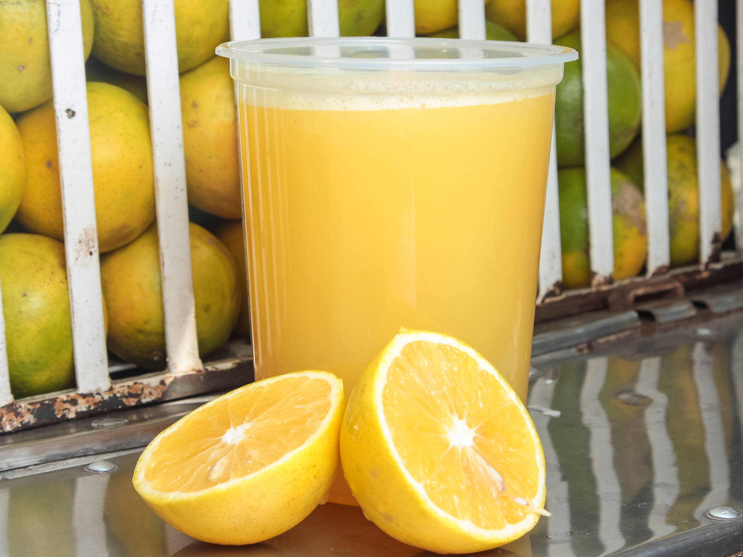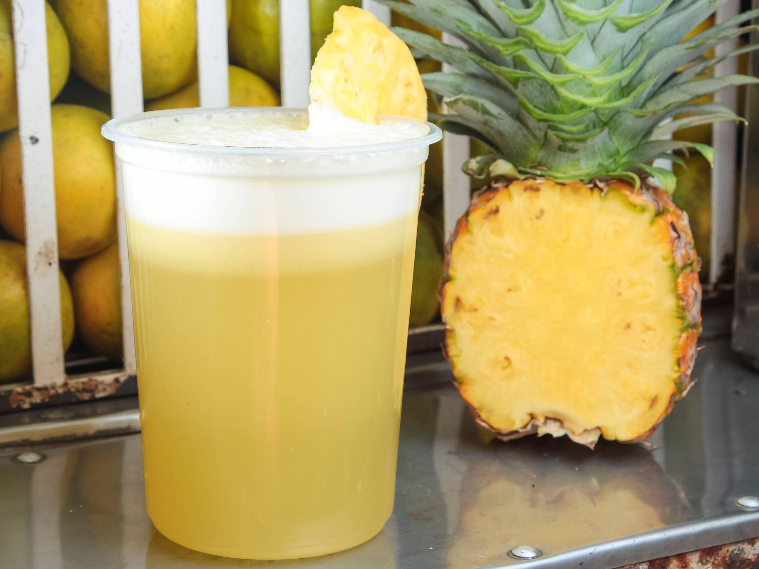 Jugo de naranja, con guayaba, piña, limón y miel.