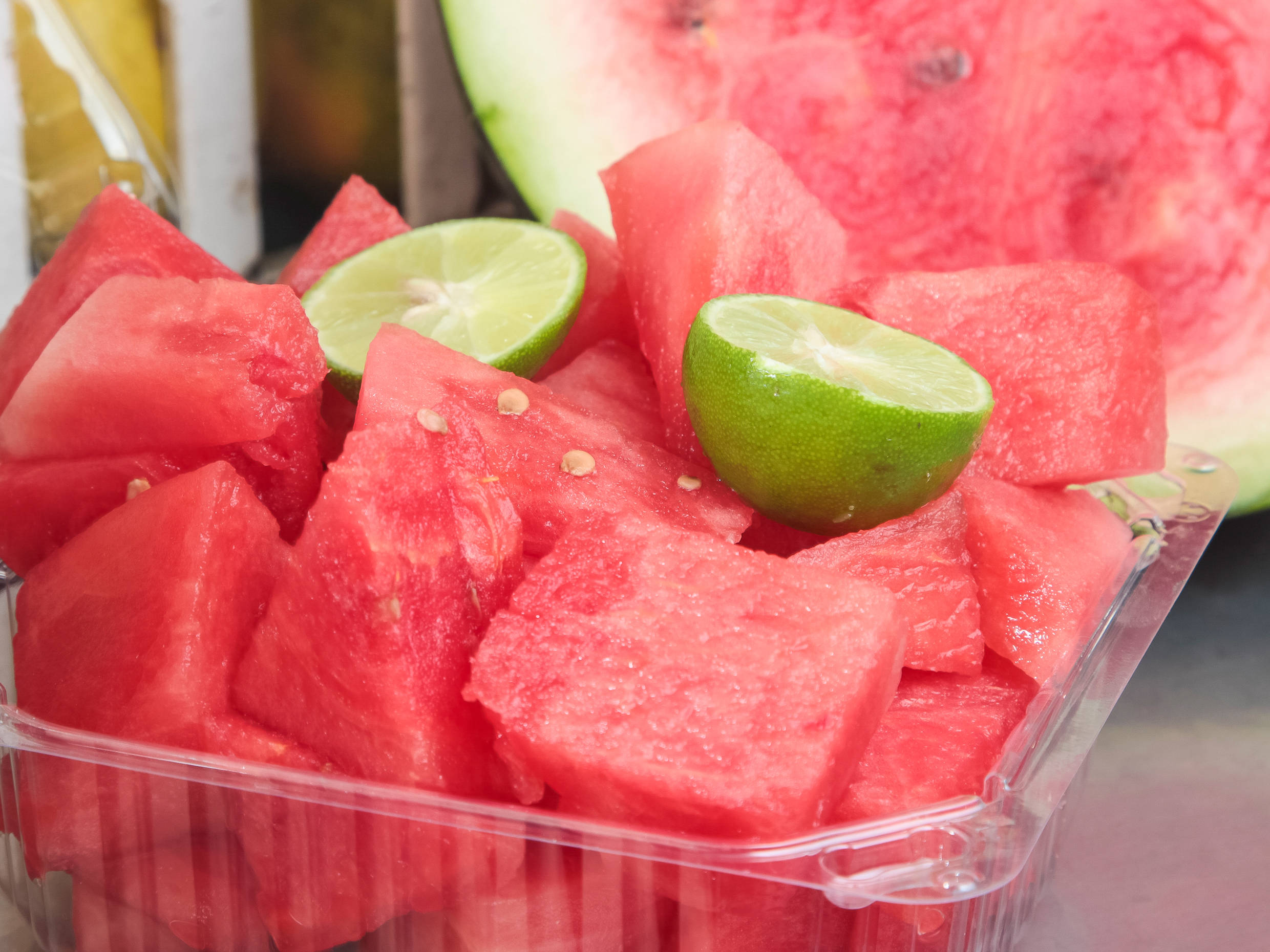 Sandía, melón, piña, papaya, guayaba, manzana, mango, fresa y platano. Domo 500 g