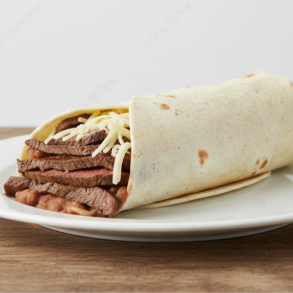 Burrito con Bistec, Queso Manchego y Frijoles
