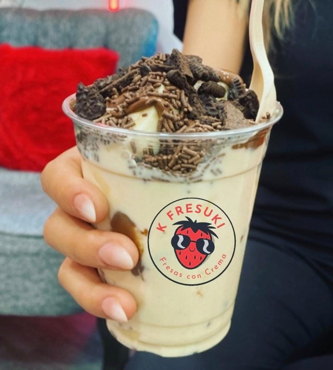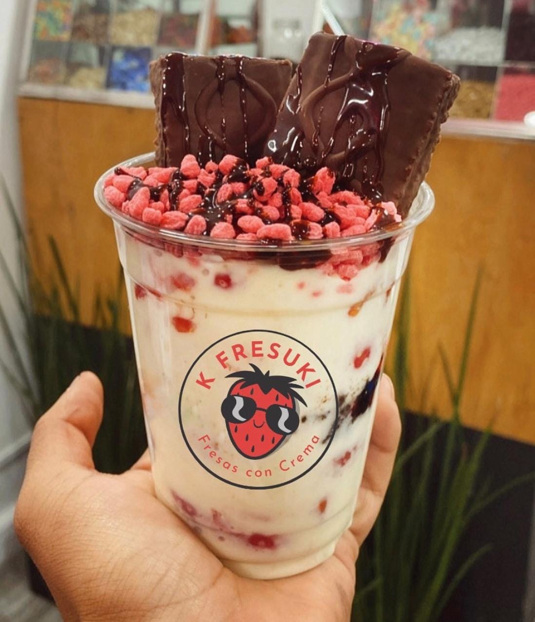 La especialidad, frescas fresas con crema de la casa, Nutella y toppings a elegir.