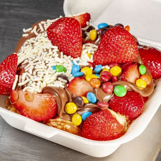25 Mini hot cakes preparados al momento, acompañados de fresas con crema, Nutella, Oreo, lechera y fresa líquida. Ideal para compartir.