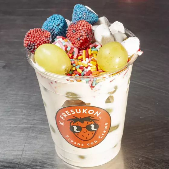 Uvas verdes con deliciosa crema y toppings a elegir.