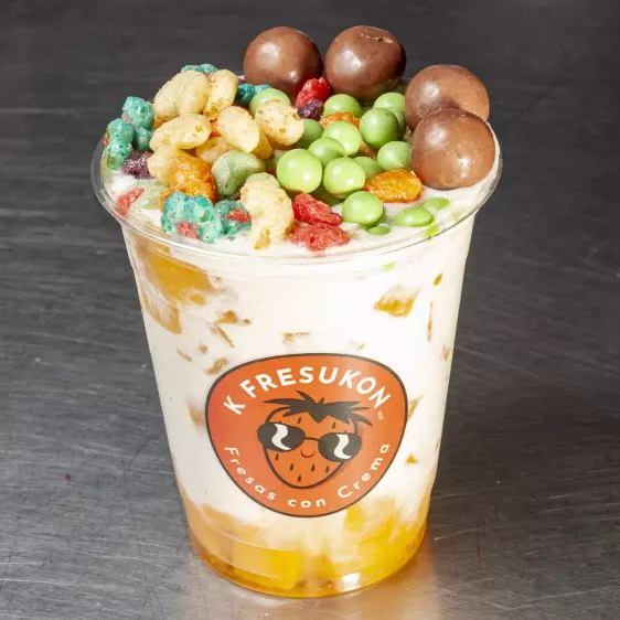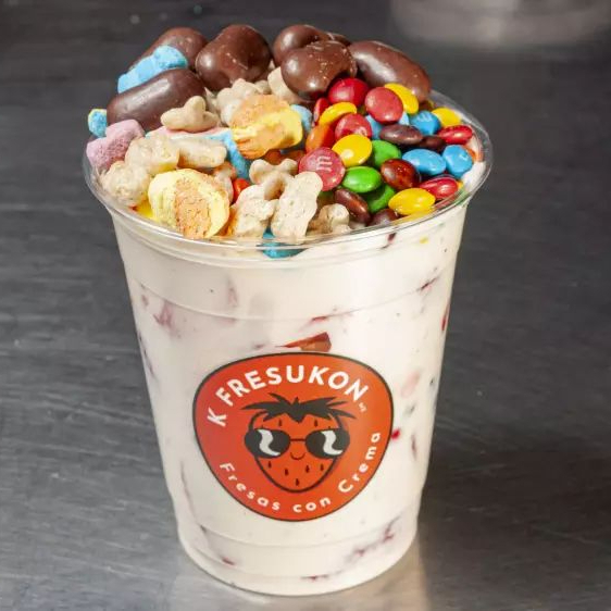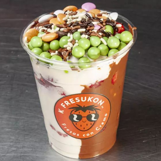 Fresas frescas con crema de la casa y toppings a elegir.