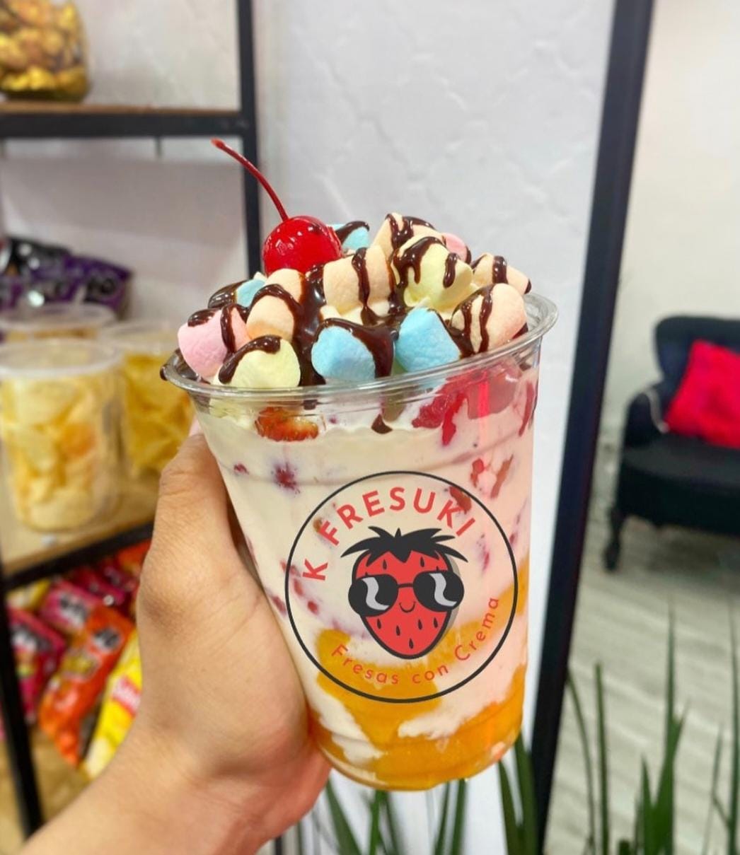 Fresas frescas con crema de la casa y toppings a elegir.