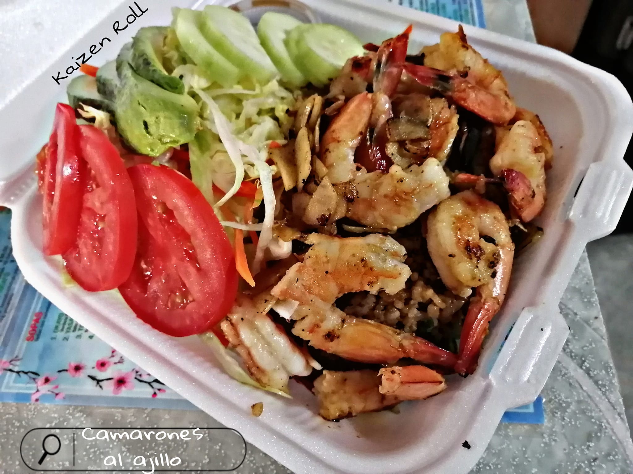 Con arroz frito, ensalada y camarón con queso manchego o Philadelphia.