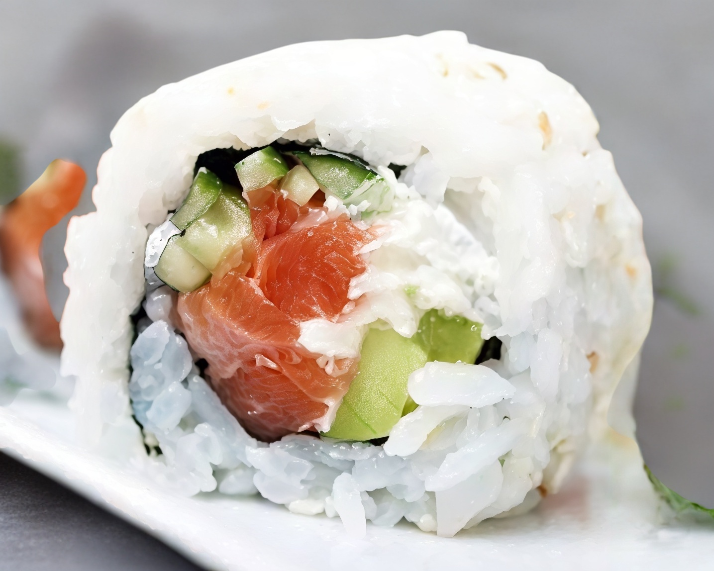 Con salmón, queso, pepino y aguacate
