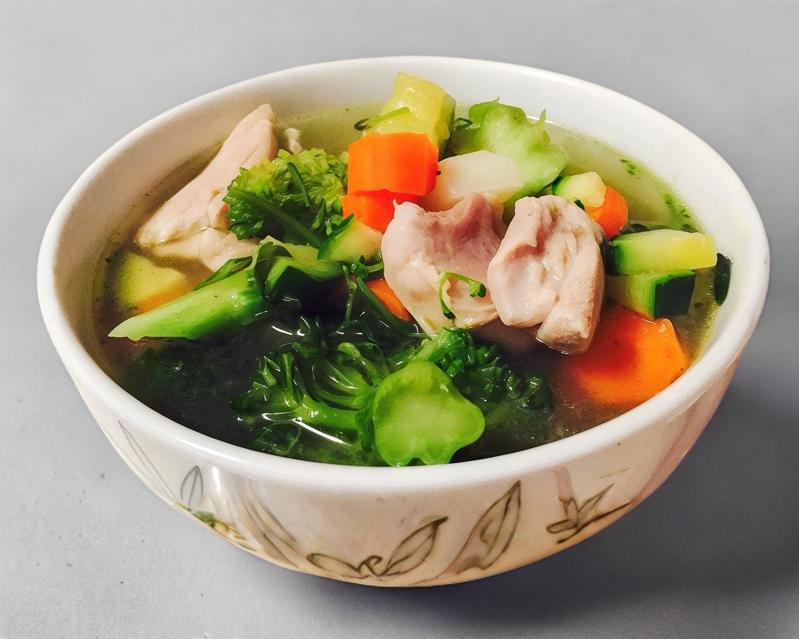Deliciosa sopa de pollo con brocoli, zanahoraria, cebolla, calabaza, champiñon y germen. 500ml
