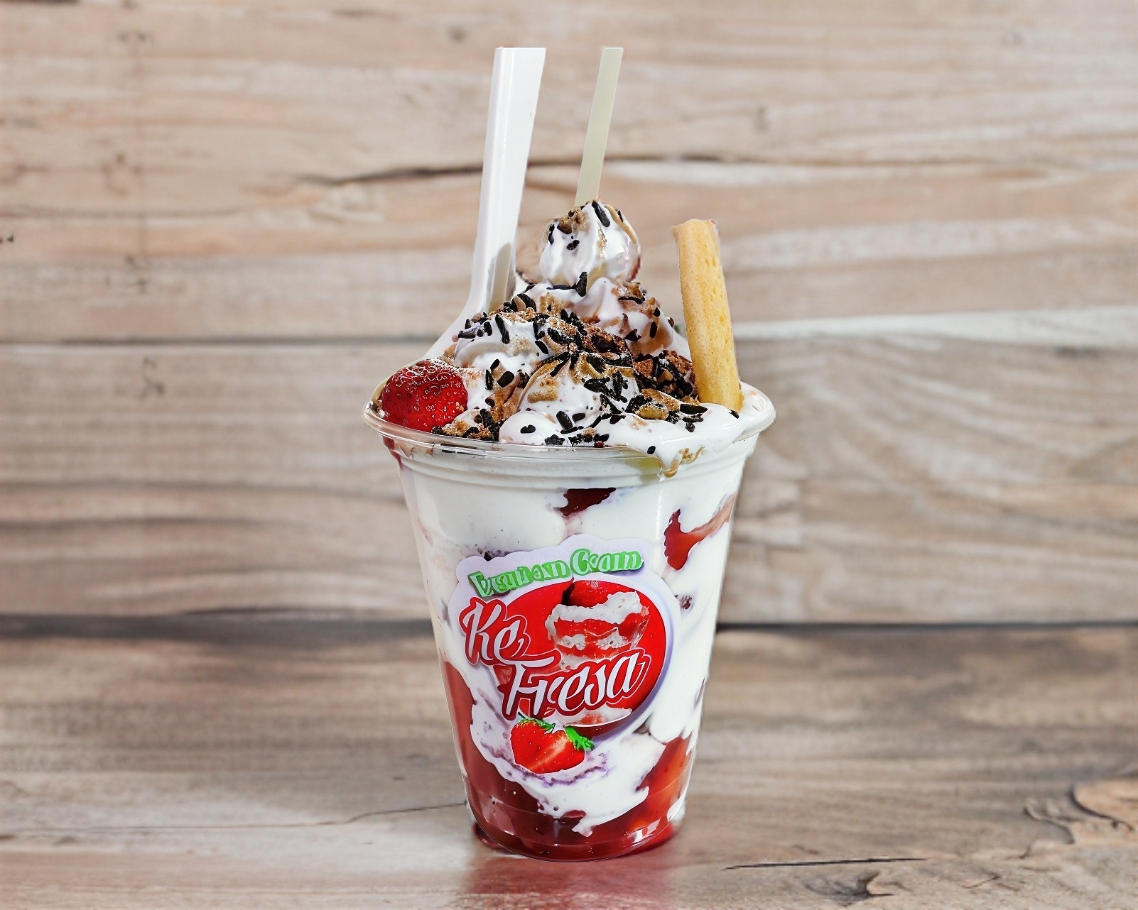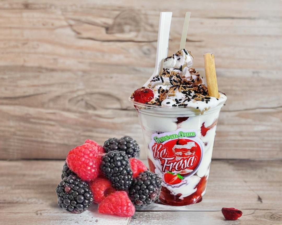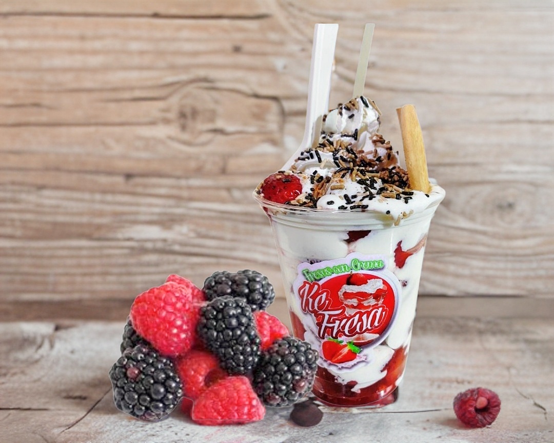 Fresa triturada, congelada con crema especial de la casa.