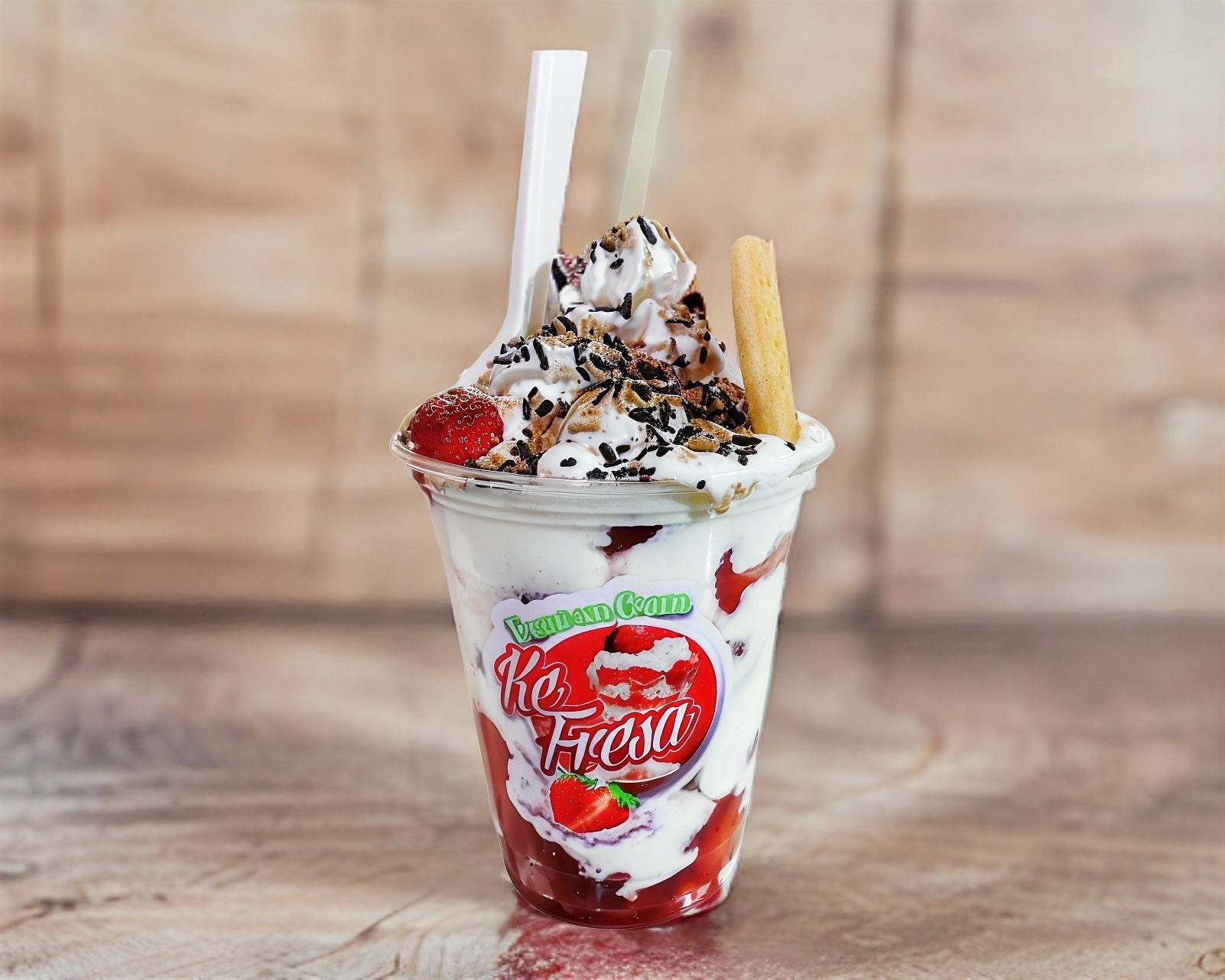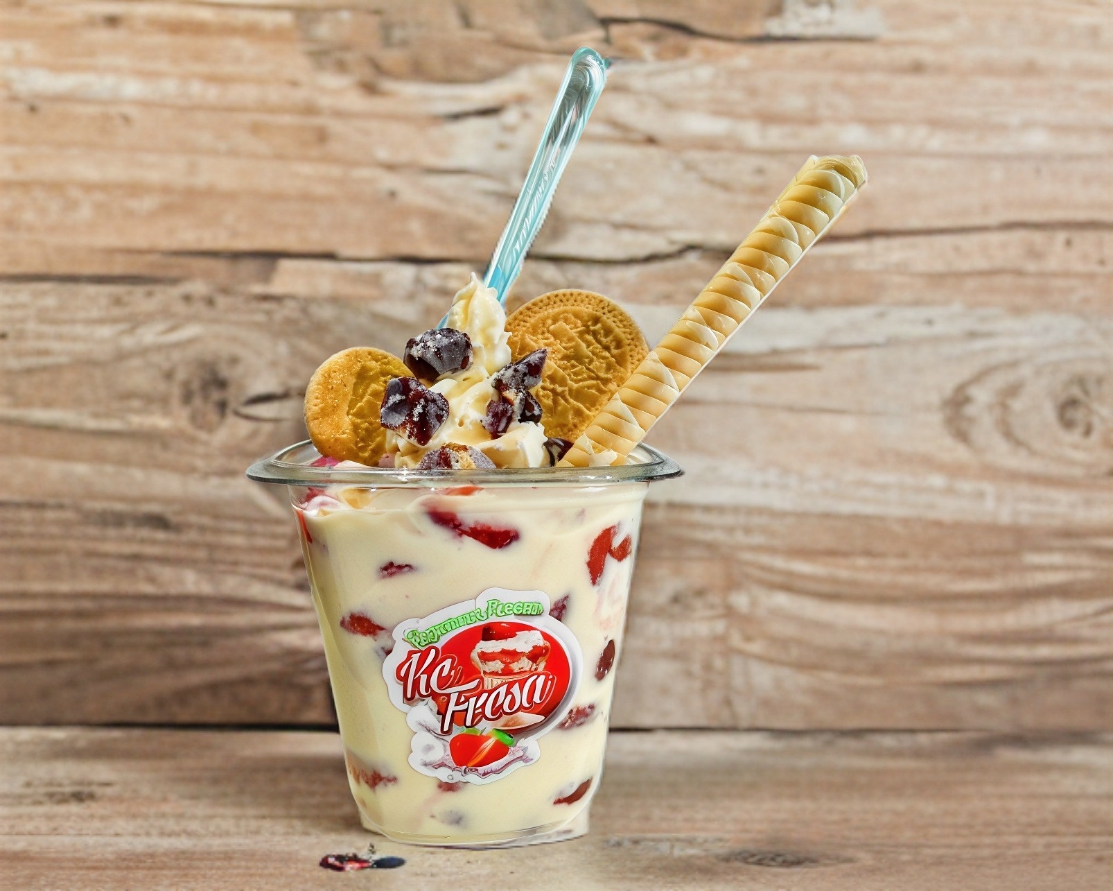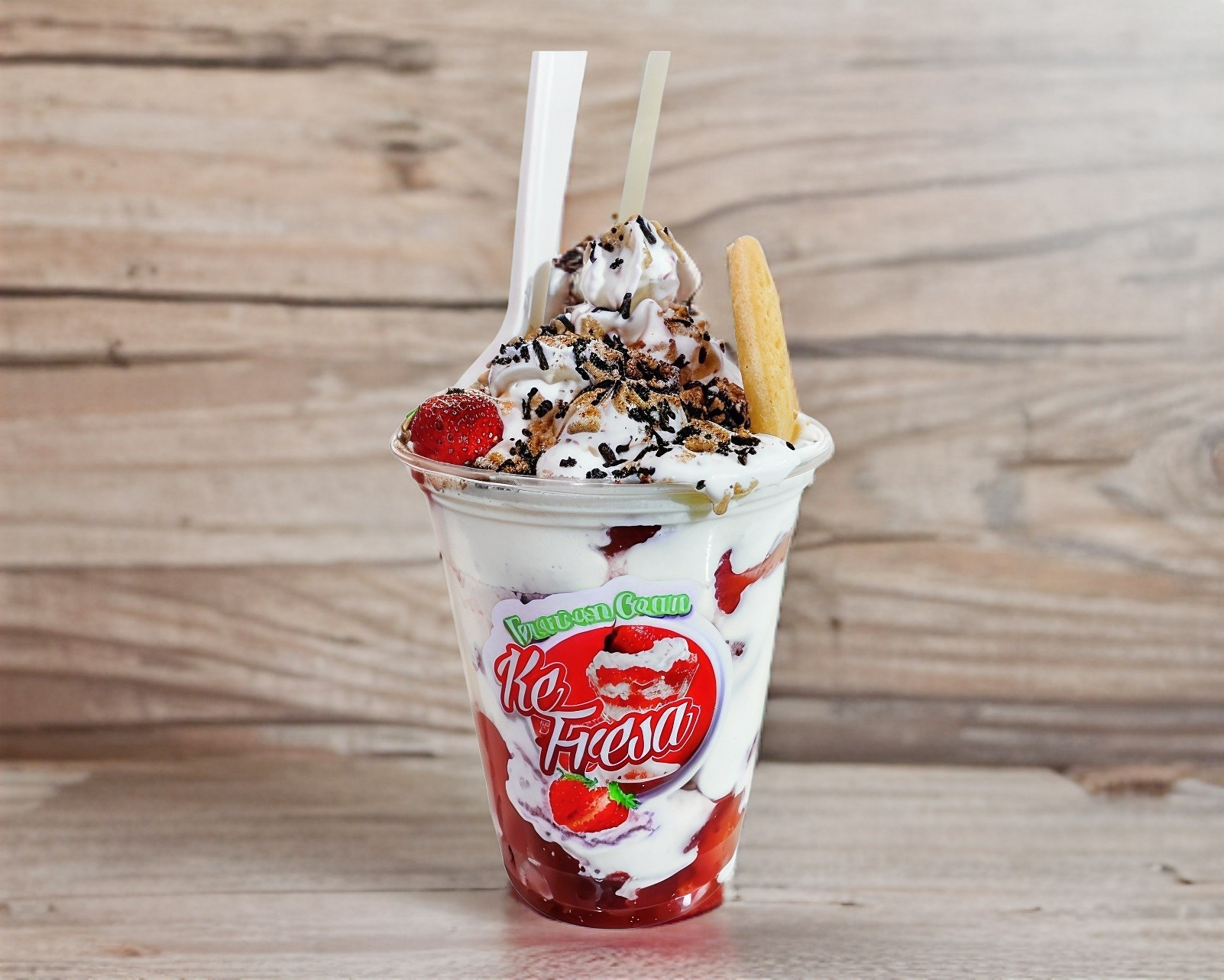 Fresa triturada, congelada con crema especial de la casa.
