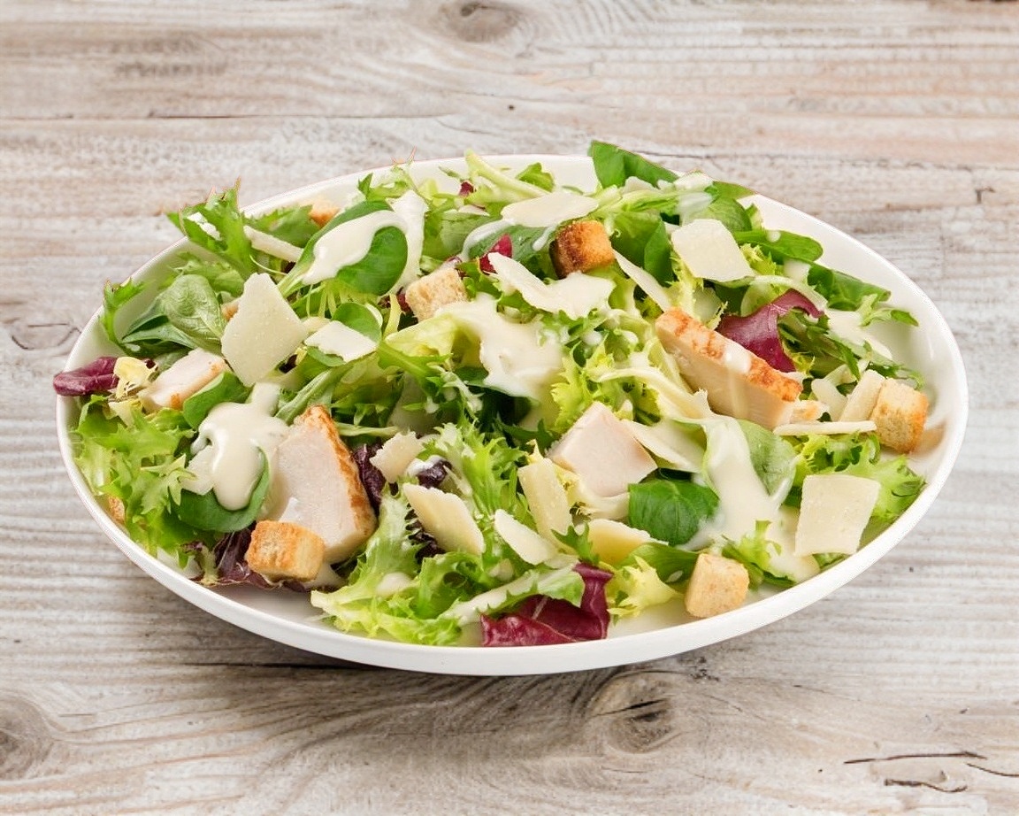 Mix de lechugas, mix de semillas, queso parmesano y aderezo a césar.