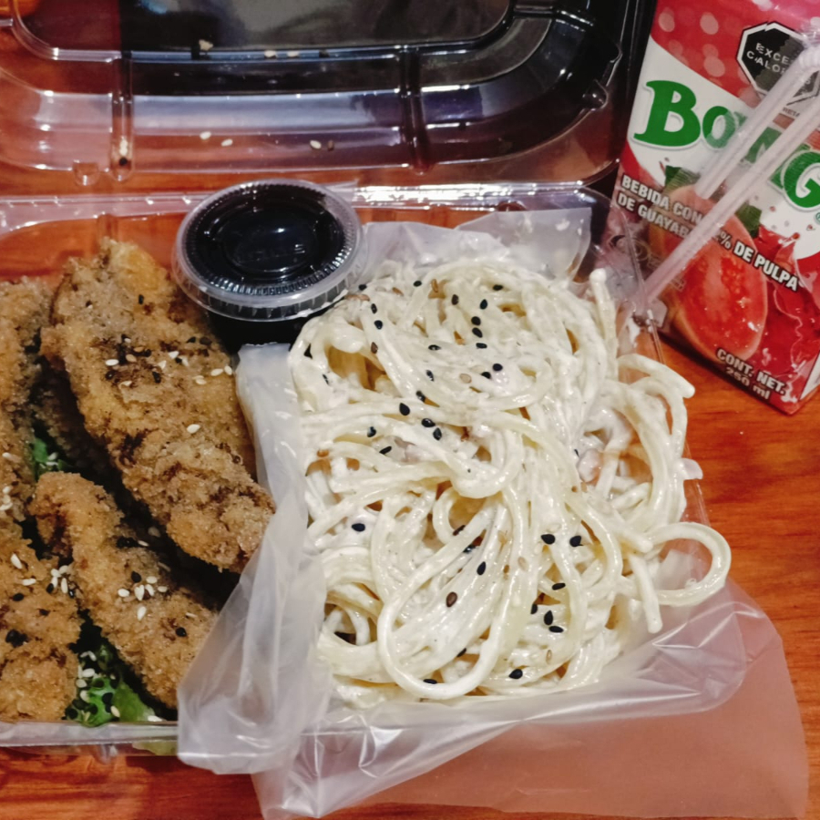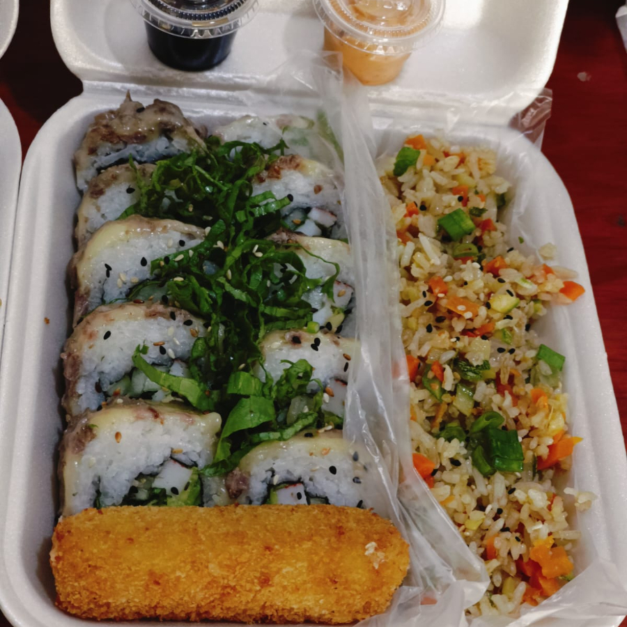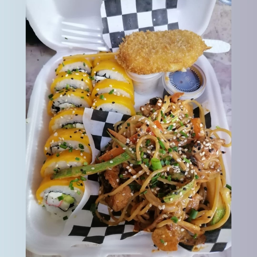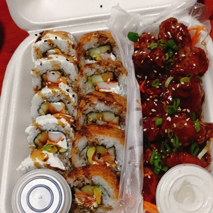 COMBO KEITARO….$140 -ROLLO CLASIC0 -ARROZ O PASTA (SOYA DULCE O CHIPOTLE) -BROCHETA DE PLATANO