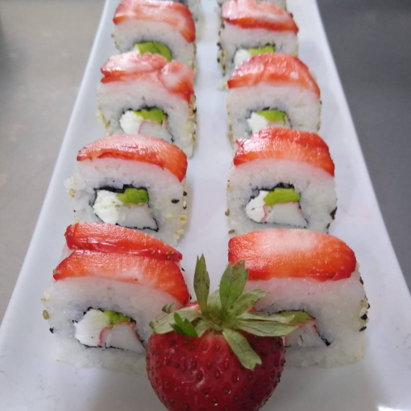 ABANICO ROLL P.F. fresa, kiwi, mango, P.D. camarón, aguacate y pepino