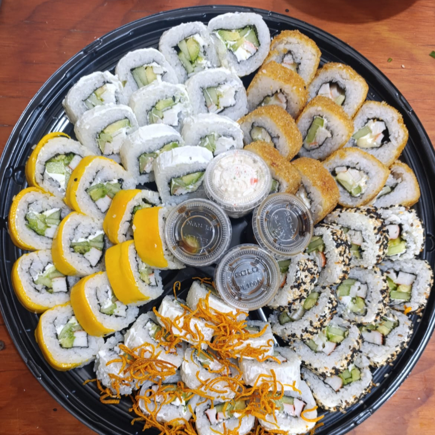 CHAROLA DE SUSHI….. -5 ROLLO CLASIC0 A ELEGUIR - 1 PORCION FAMILIAR DE ARROZ O PASTA (SOYA DULCE O CHIPOTLE)