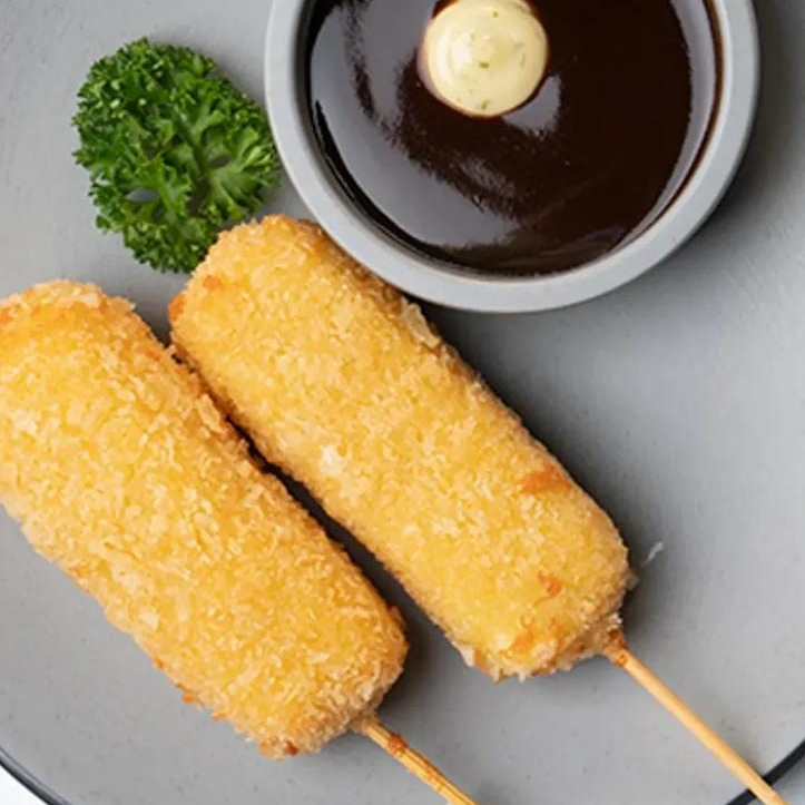 Orden de 5 camarones empanizados rellenos de queso philadelphia, con salsa kushiague