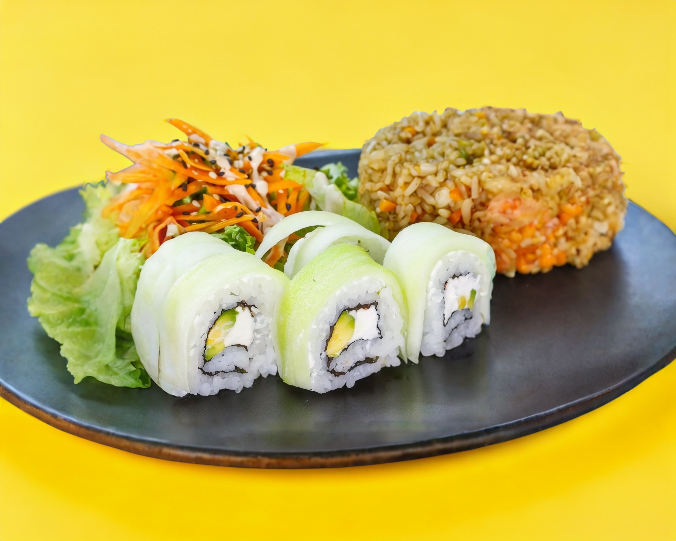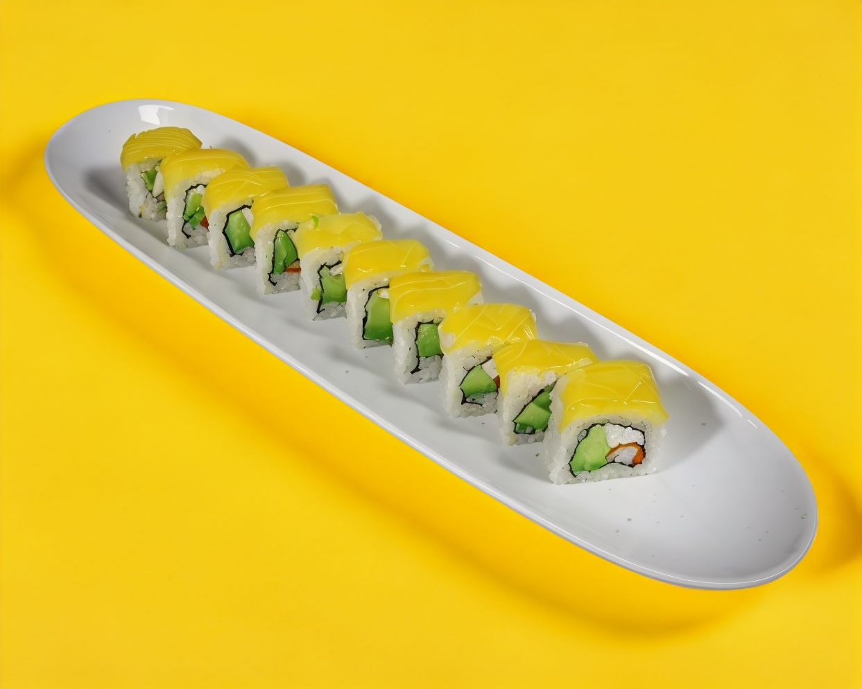 Relleno de surimi, pepino y Philadelphia envuelto en aguacate.