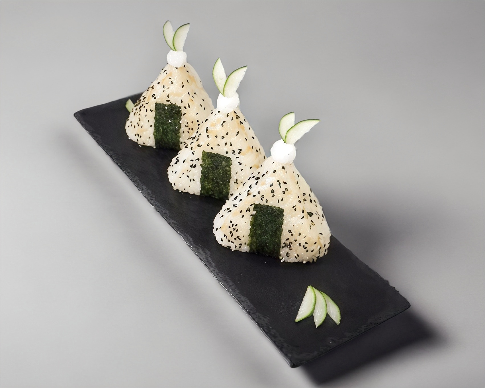 Triángulos arroz rellenos de pepino y quesho Philadelphia