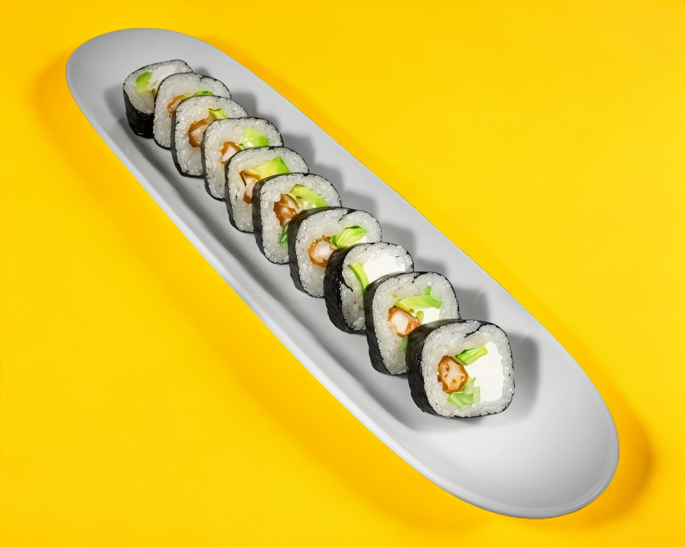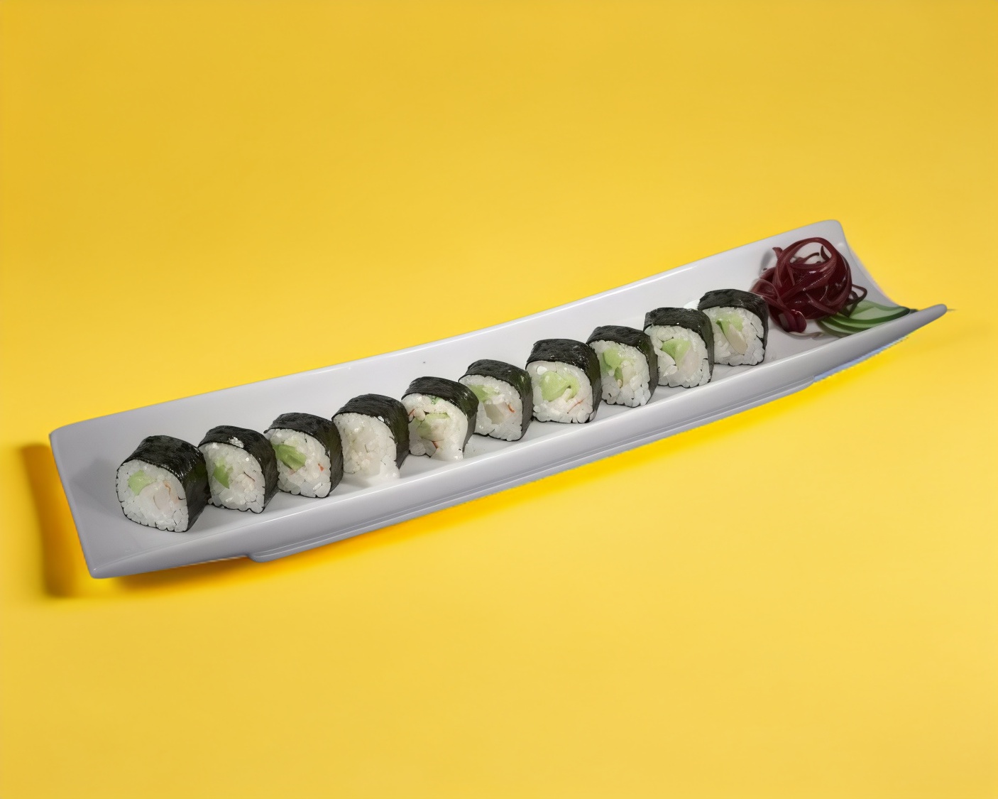 Relleno de surimi, pepino y Philadelphia envuelto en alga nori.
