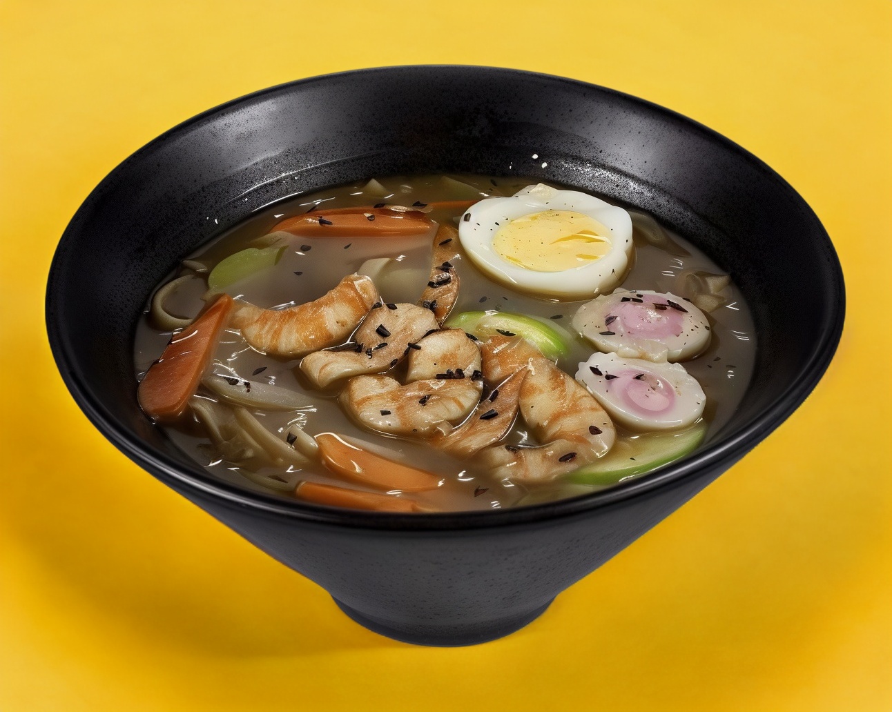 Sopa de fideos preparado con un caldo aromatico, acompañado de distintos ingredientes, que se añaden a modo de toppings con Pollo