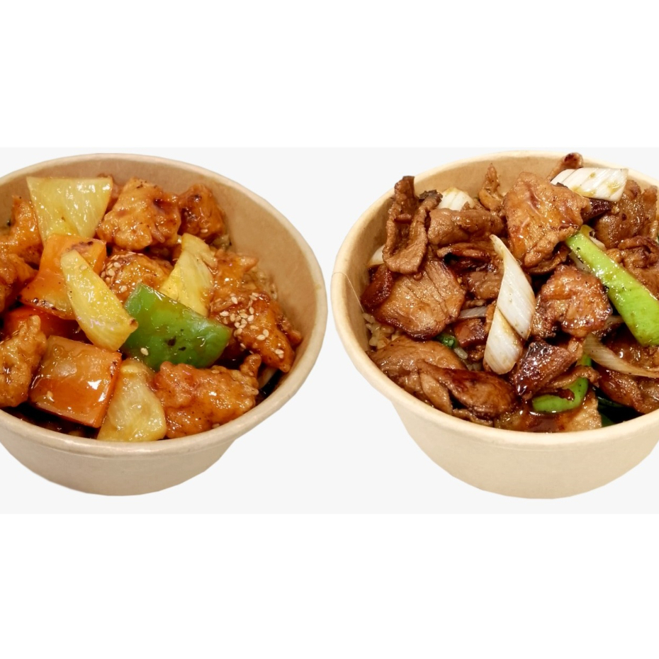 Dos bowls, con Base de Chow Fan o Fideo + Especialidad