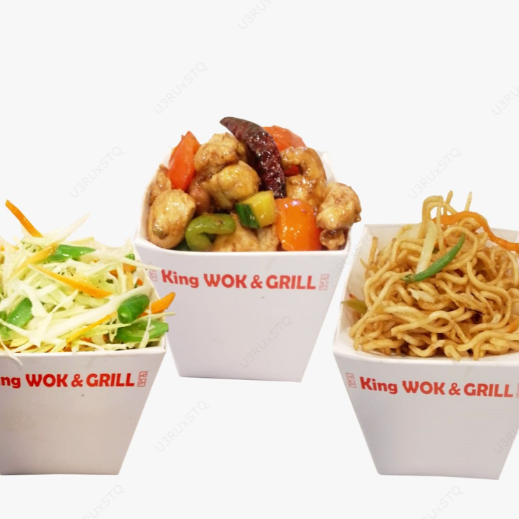 Dos Especialidades a Elegir, Dos Yakimeshi o Gohan o Chow Mein Salteado y Dos Verduras al Wok
