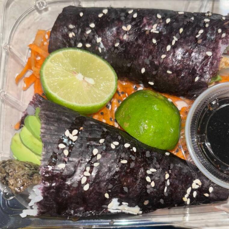 Cono de sushi, por dentro queso, pepino, aguacate, y una proteina de su elección.