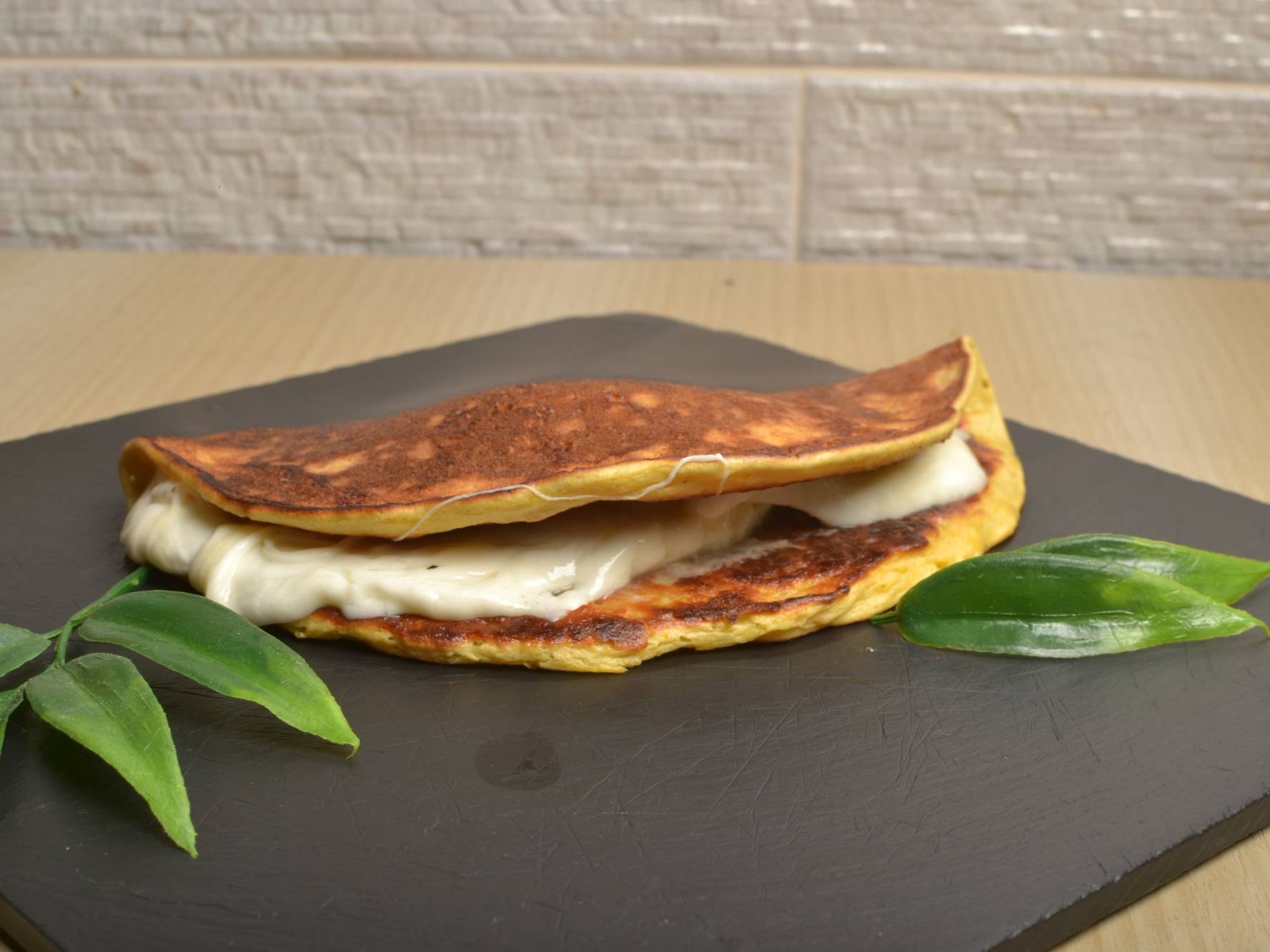 Hecha con maíz molido frescos y se cocinan a la plancha como hot cakes. Rellena de jamon y queso.