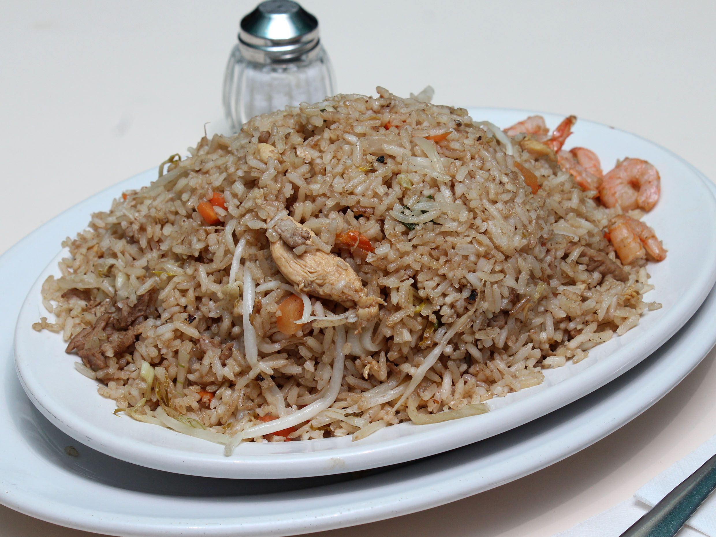 Nuestro arroz frito viene cargado de sabor con camarón, calamar y pescado, salteados con germen de soya, verduras frescas y huevo. ¡Una mezcla que lo tiene todo