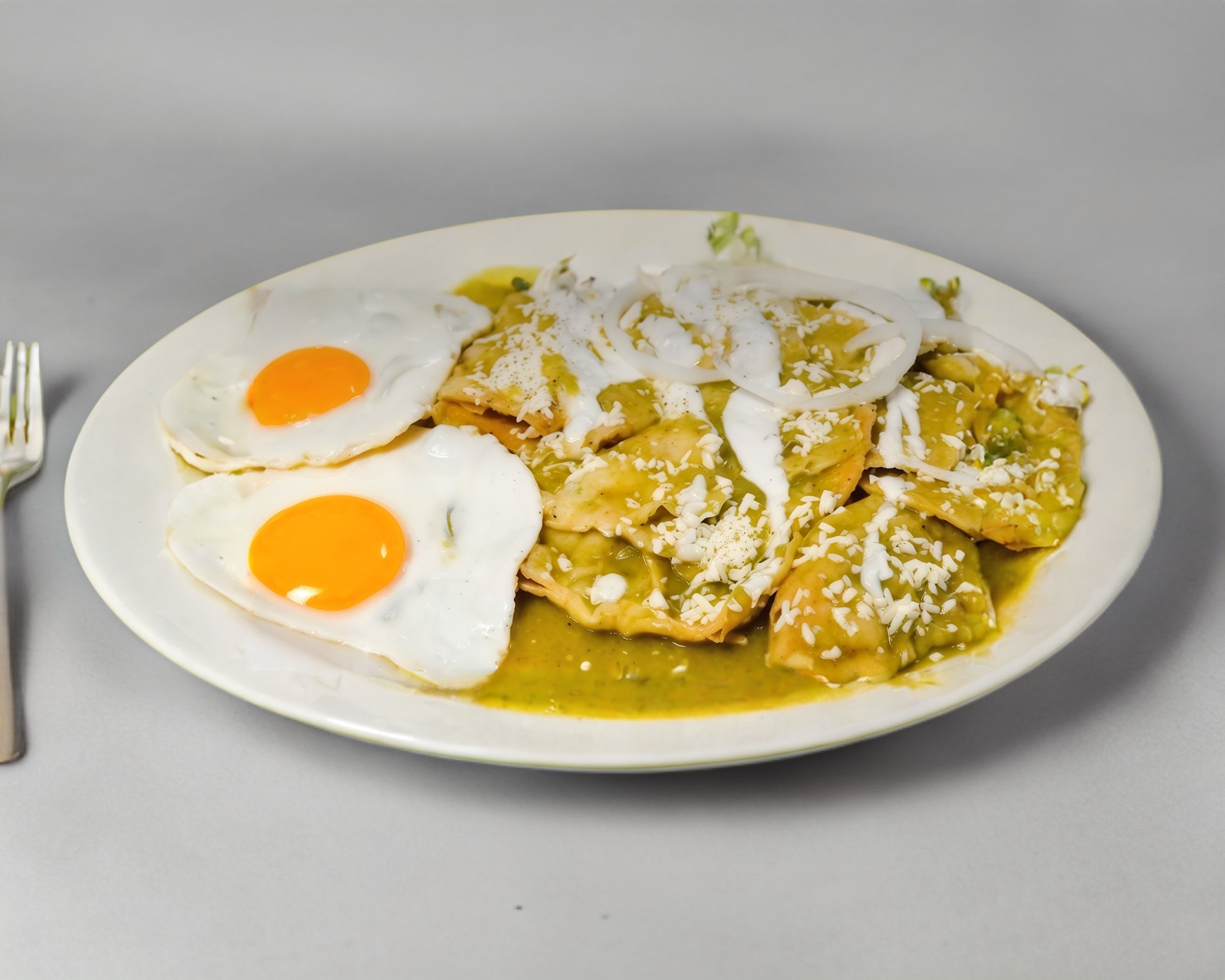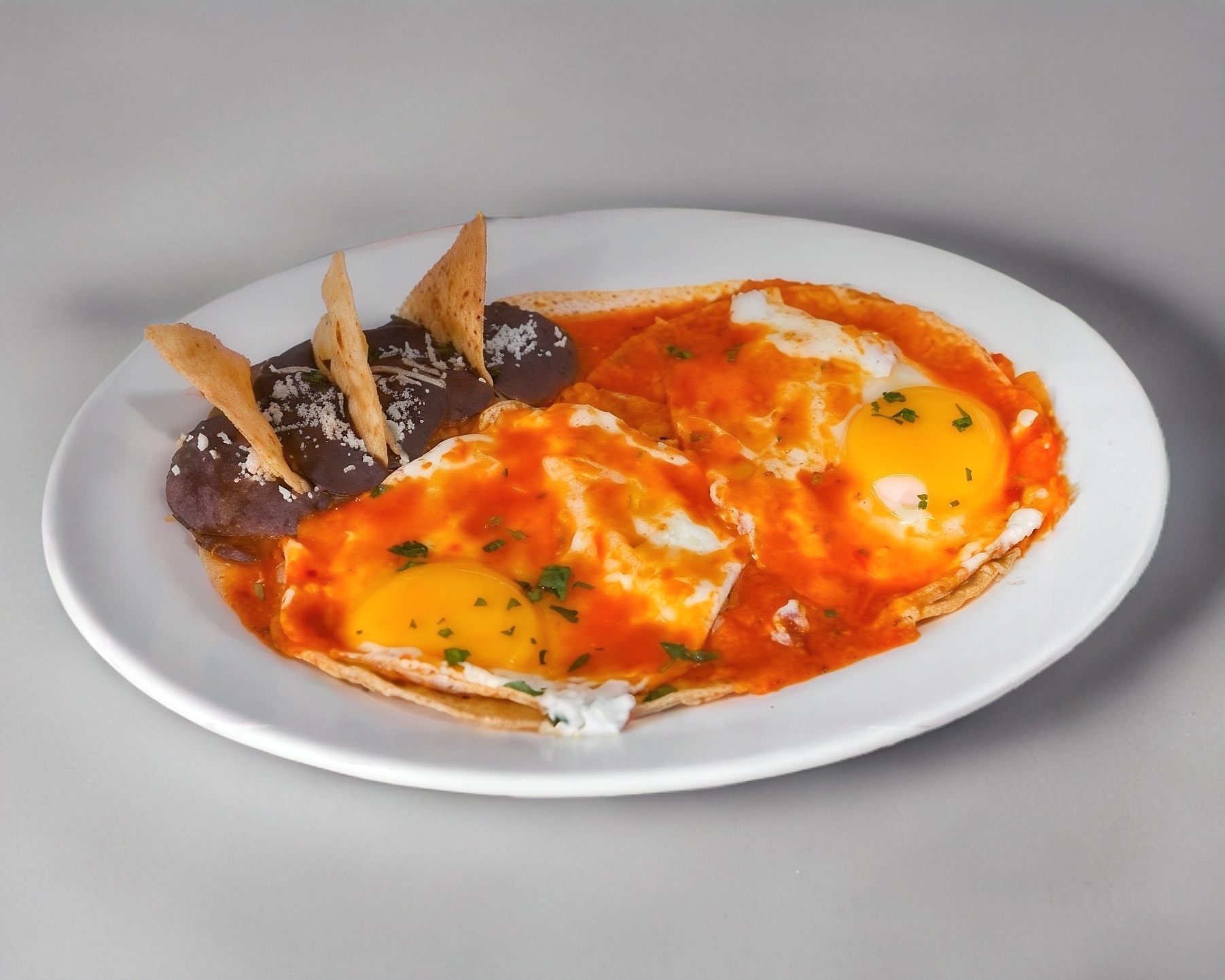 Los crujientes chilaquiles rojos o verdes con dos huevos al gusto: estrellados o revueltos.