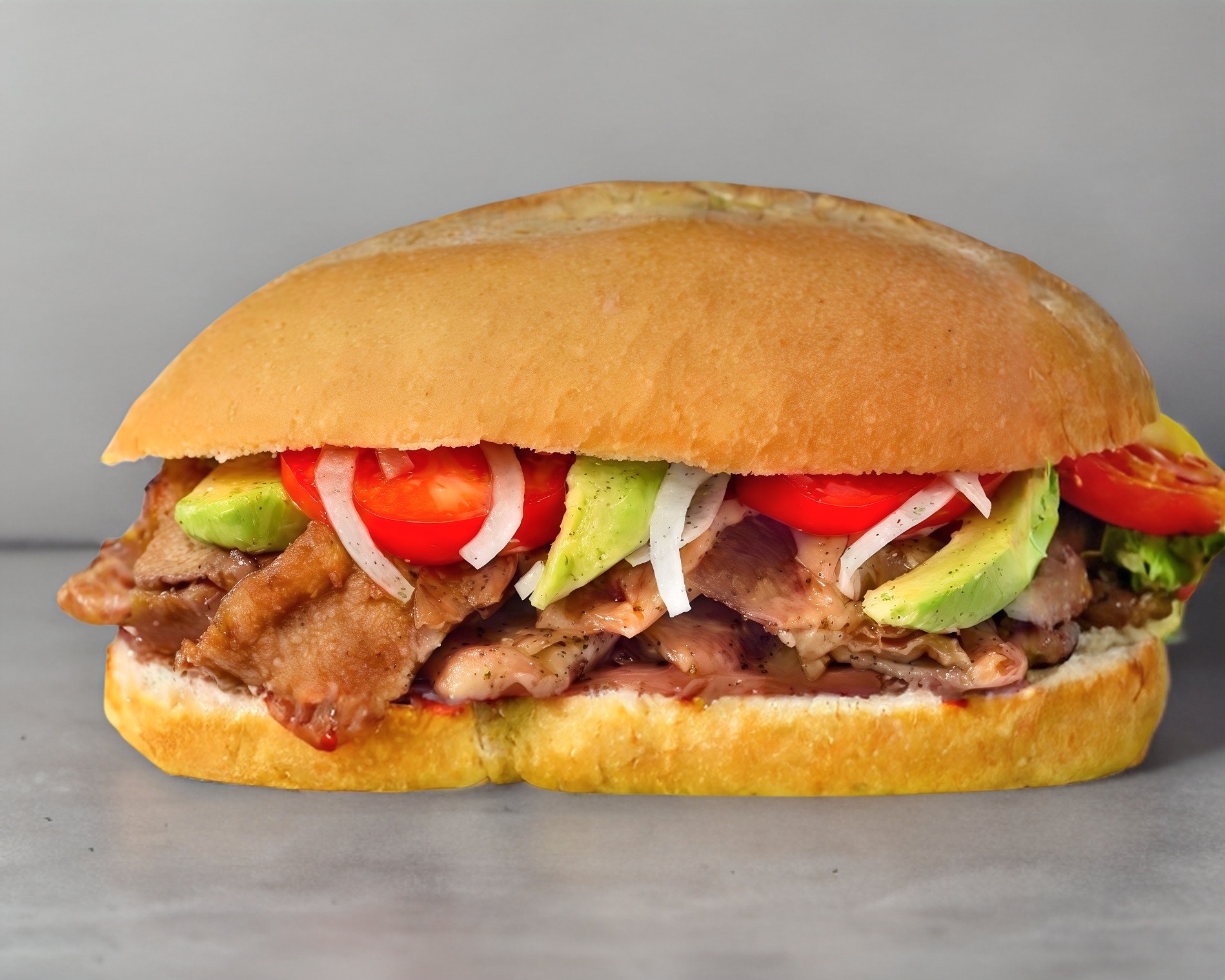 El rey de los sandwiches, pan de tu preferencia, jamón, queso manchego, queso amarillo, tocino, pollo, jitomate, lechuga y papas a la francesa.