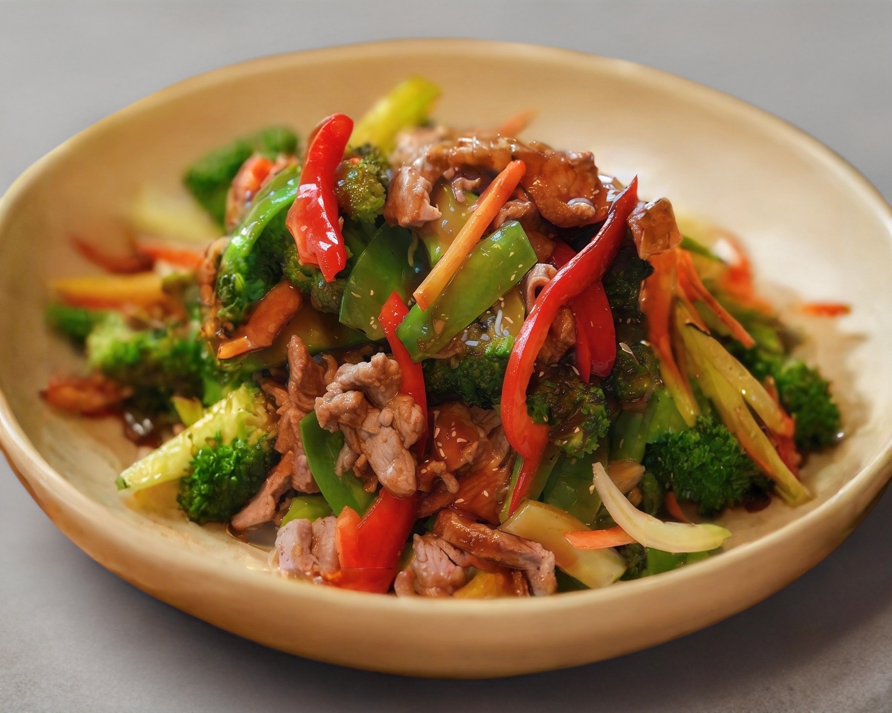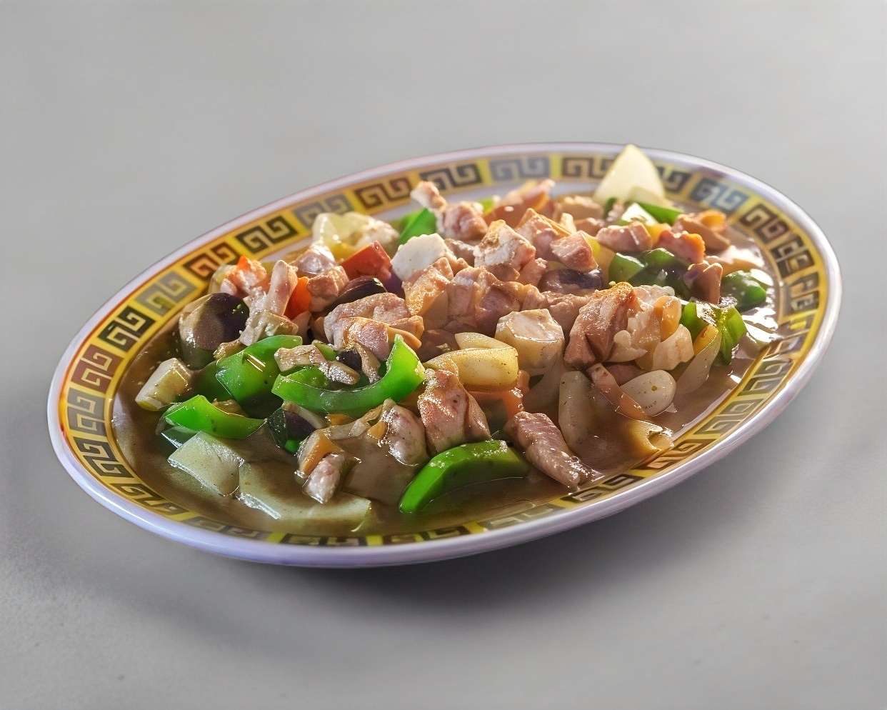 El clásico platillo de pimiento morrón verde guisado con tu proteina favorita en su jugo con un toque de cebolla, elotitos, champiñones, apio y frijol negro chino.