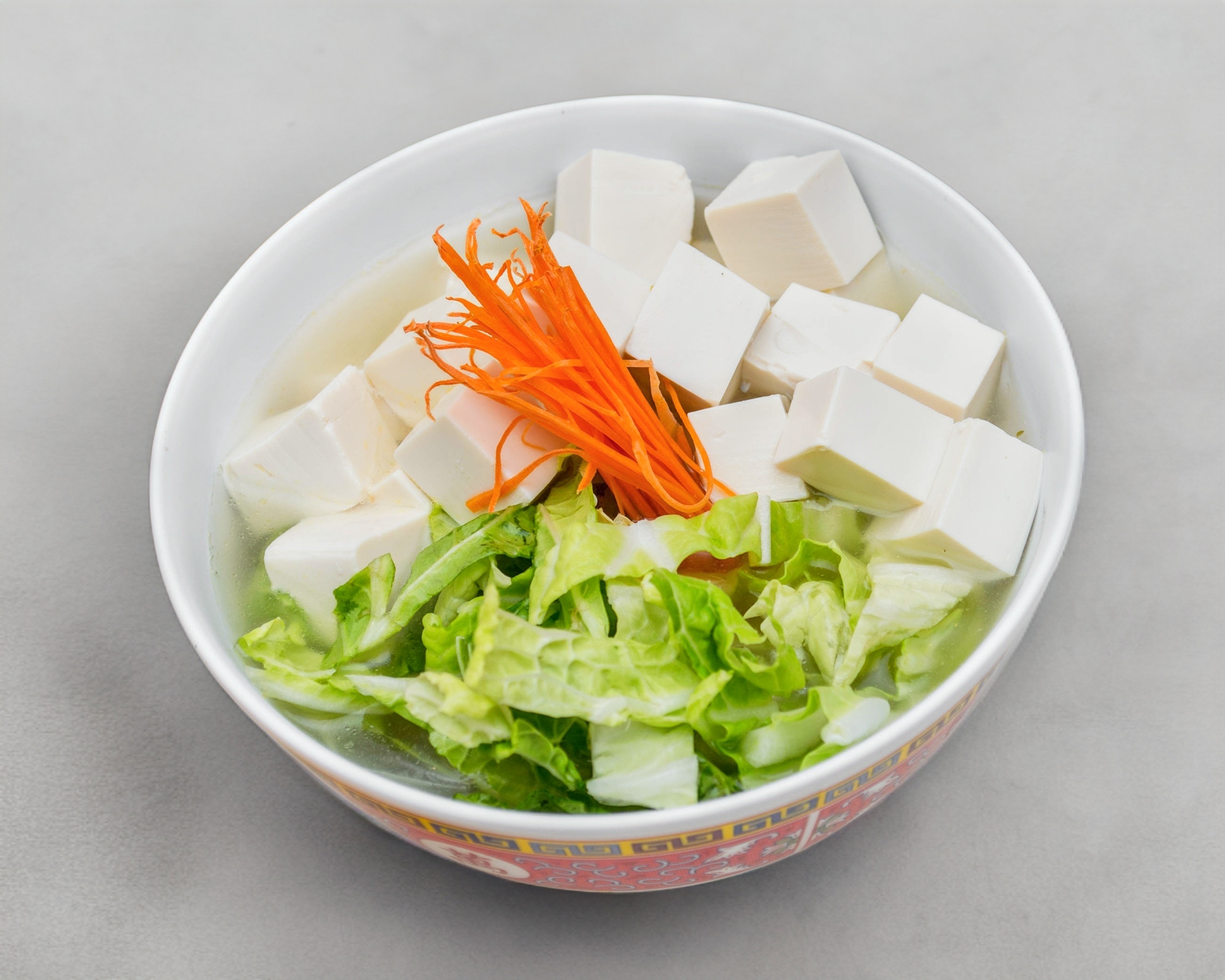 Sopa saludable a base de queso de soya y chicoria fresca.