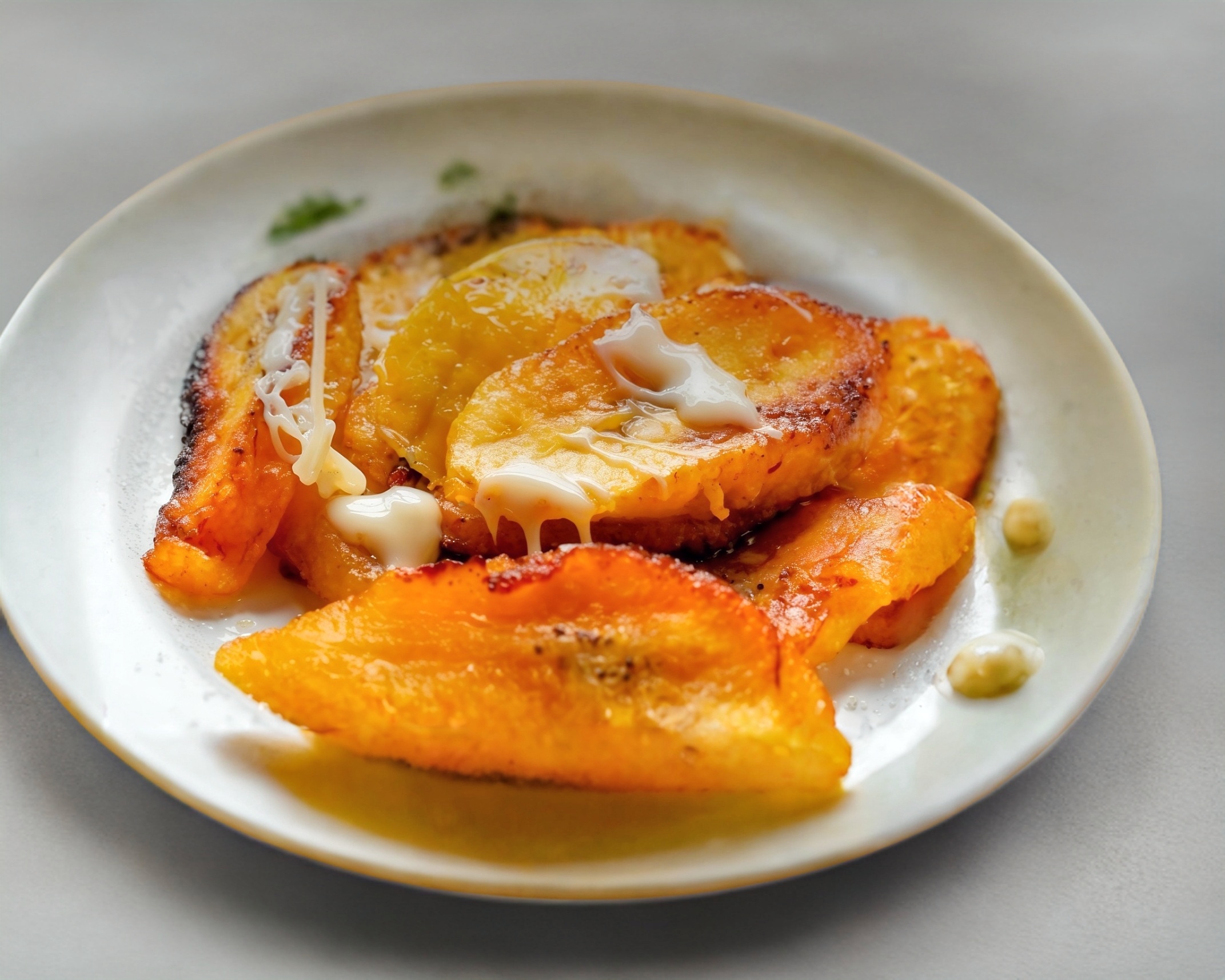 Plátano macho fritos con crema.