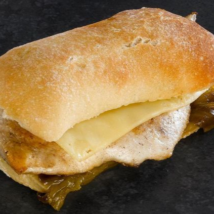 pollo empanizado estilo tender, gouda, lechuga, jitomate, cebolla