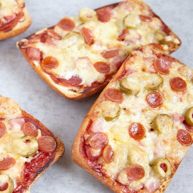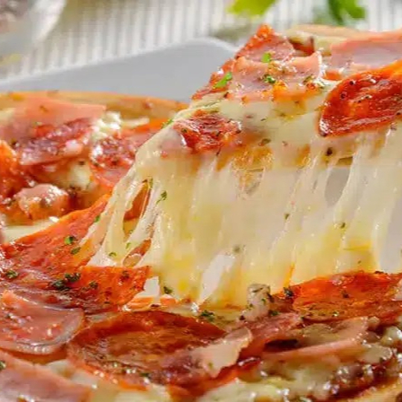 Pepperoni, jamón serrano, jamón de pierna, champiñón, cebolla caramelizada, costra de Oaxaca