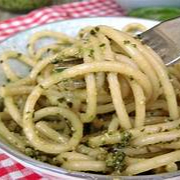 Pasta con albahaca, aceite de oliva, piñón, nuez, cacahuate y parmesano