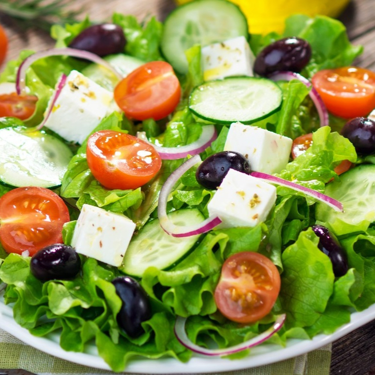 Mix de lechugas, aguacate, cherry, huevo, tocino, pepino, roquefort y aceite de oliva