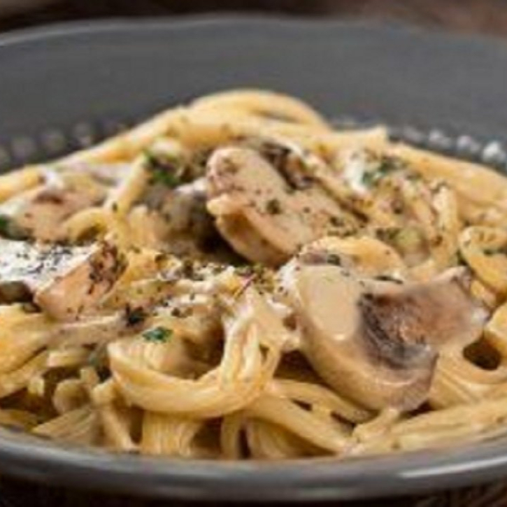 Pasta con tocino, champiñón, crema Lincoln, parmesano y perejil