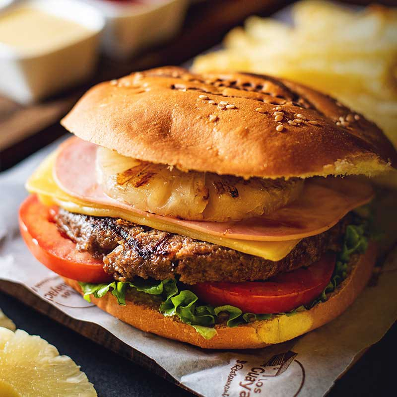 Hamburguesa hawaiana con papas