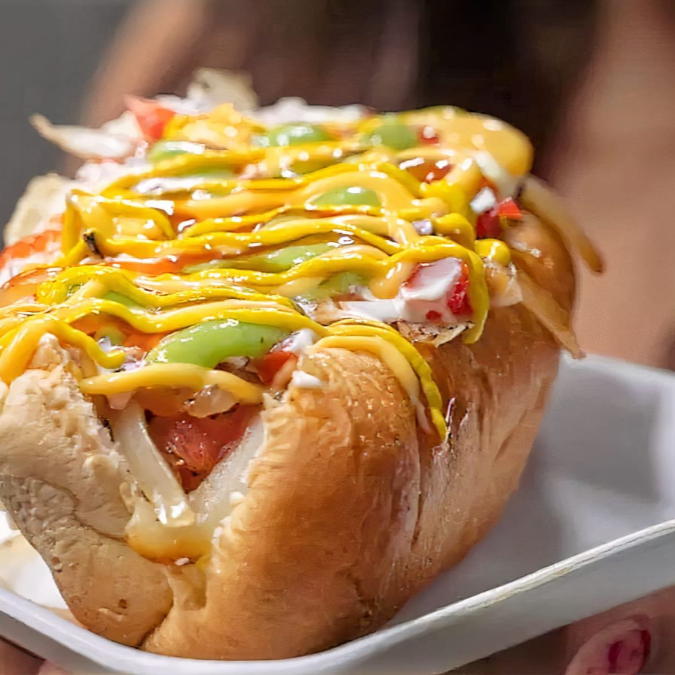 hot dog tradicional con queso oaxaca y chorizo
