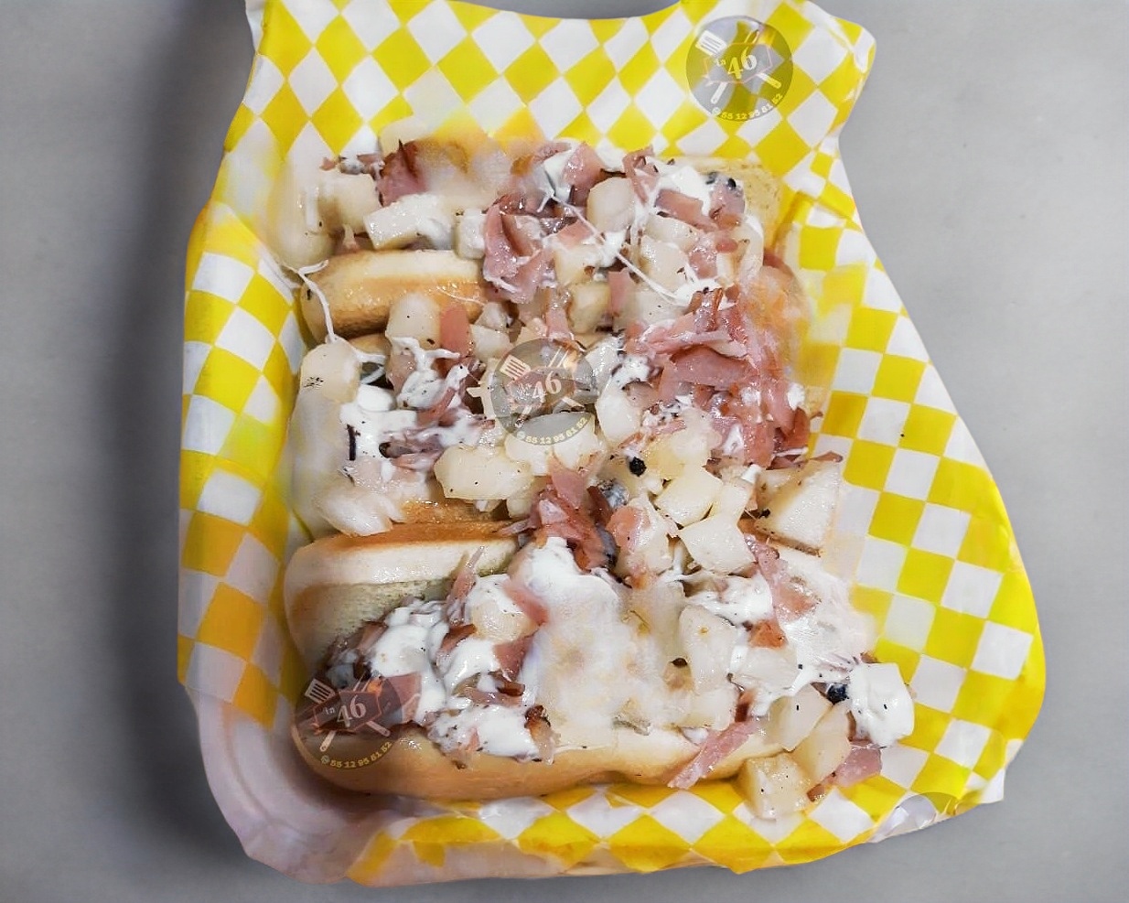 Carne de arrachera, queso oaxaca, queso amarillo, jamón y salchicha. (No incluye papas)