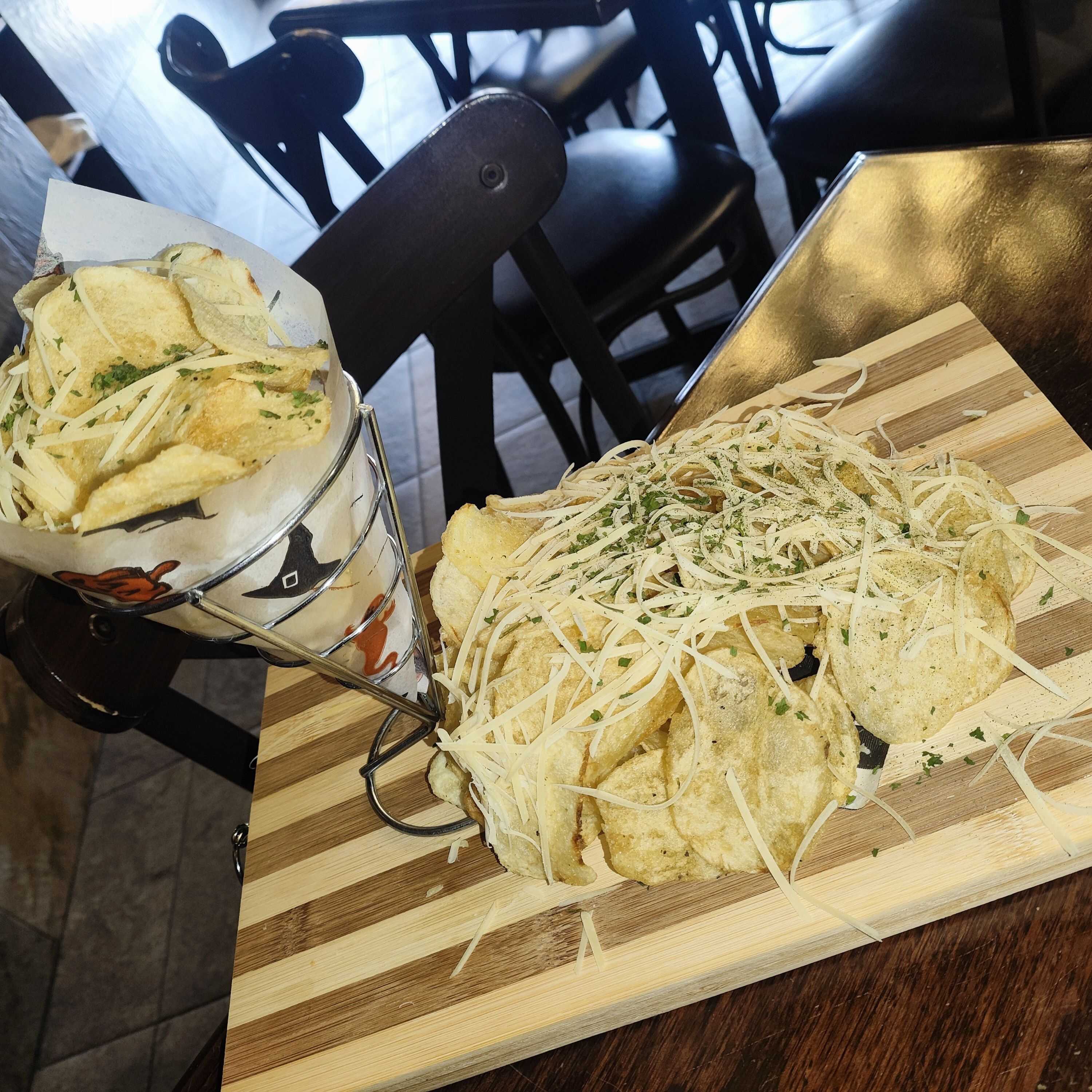 Papas hojuela con queso parmesano y perejil