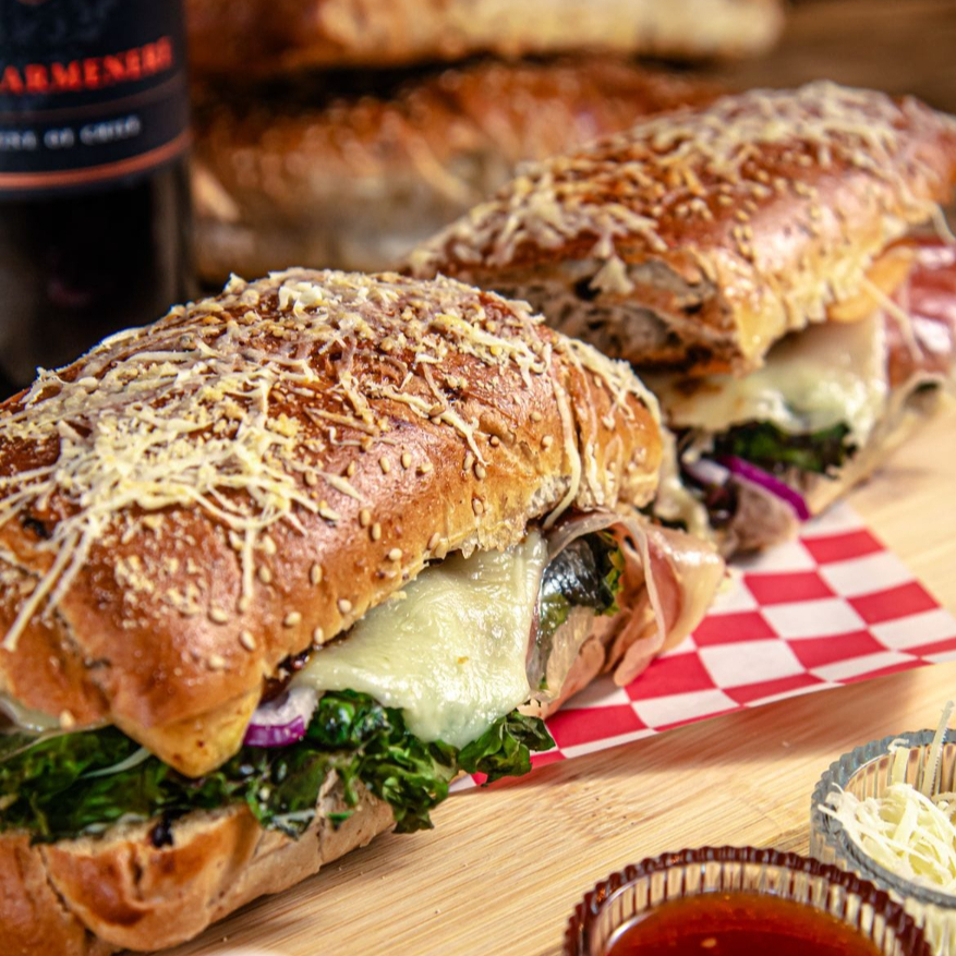 Baguette completa con 4 proteínas a elegir, acompañado con papas o ensalada.
