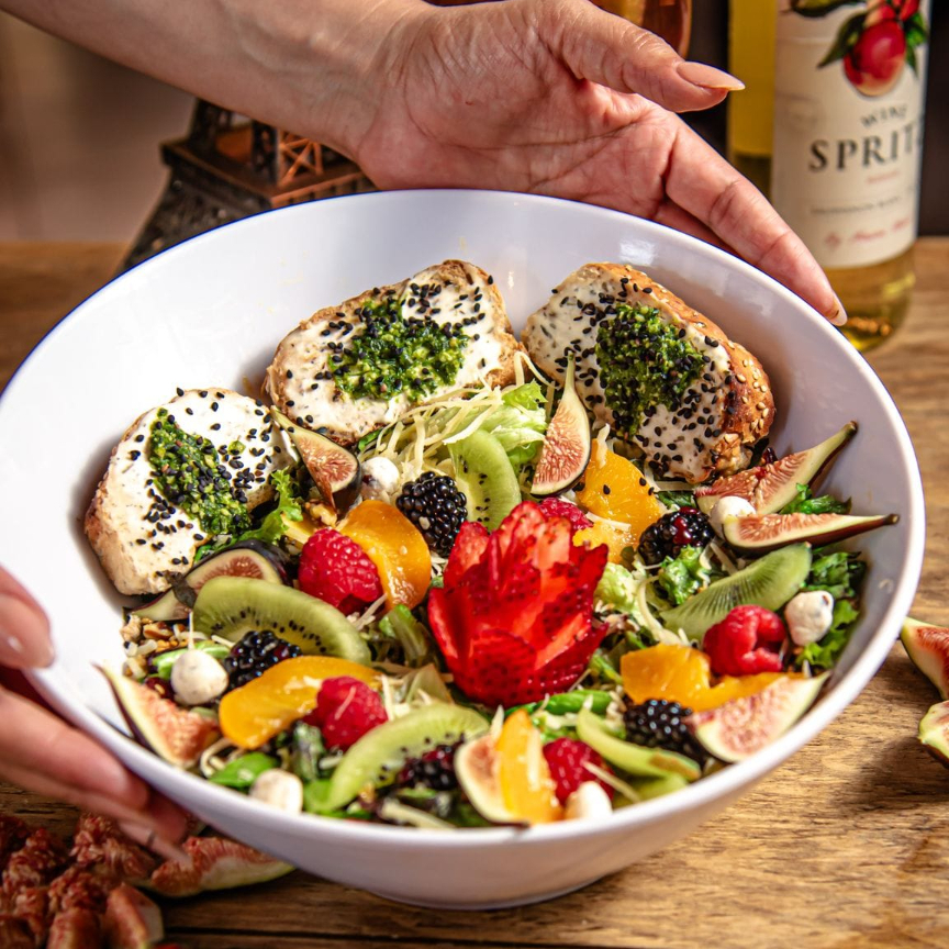 Media baguette y media ensalada. En cada combo tú eliges de qué es tu baguette y la ensalada es la base.