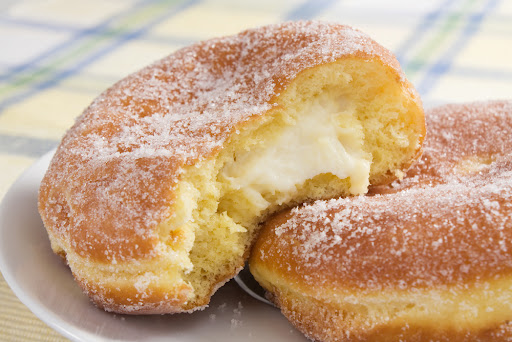 Rellena de helado de vainilla, frutos rojos, crema batida, conejito Turin y chocolate líquido.