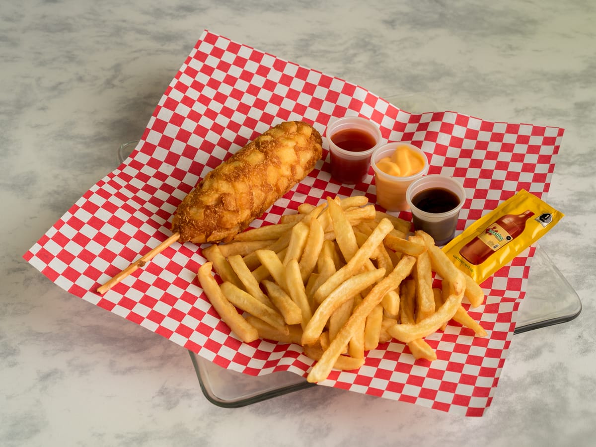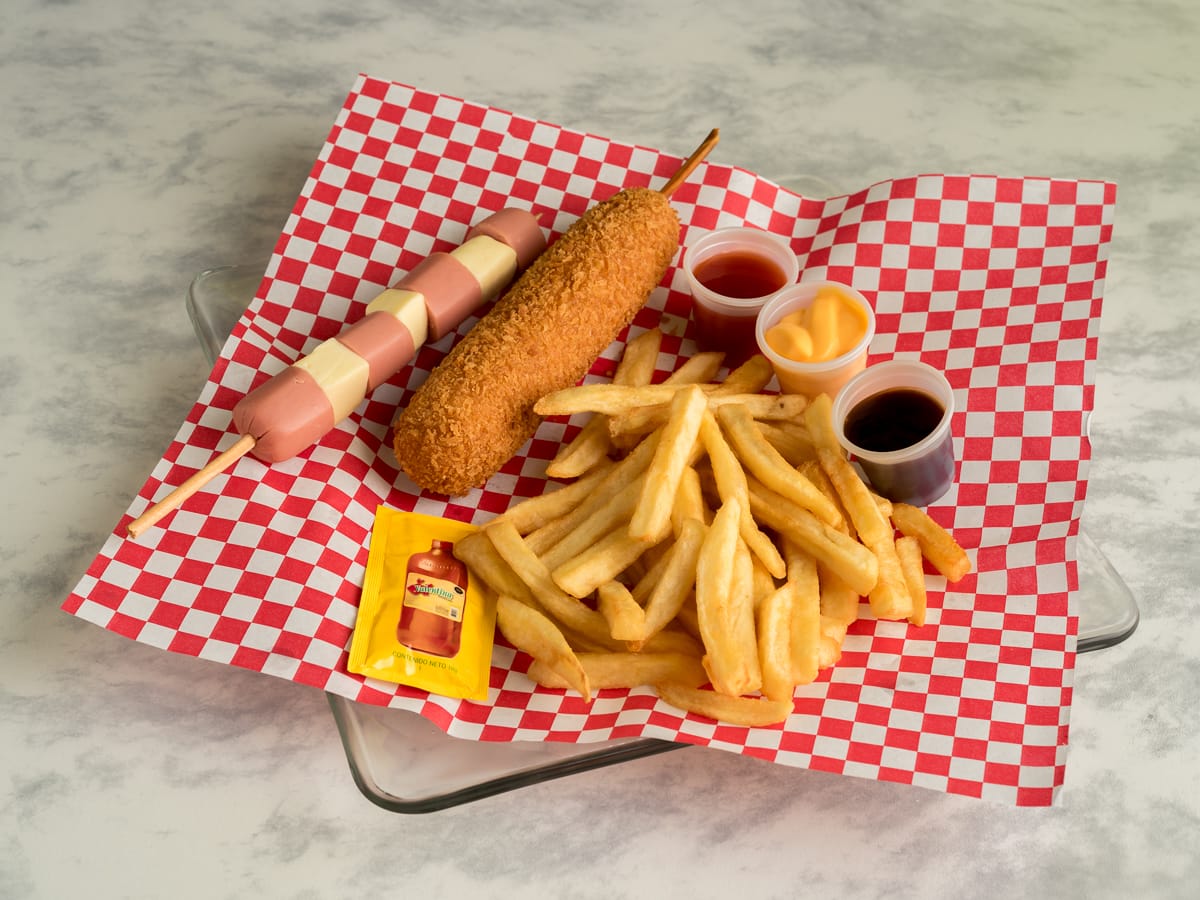 Banderilla sencilla con su buena porción de papas.
