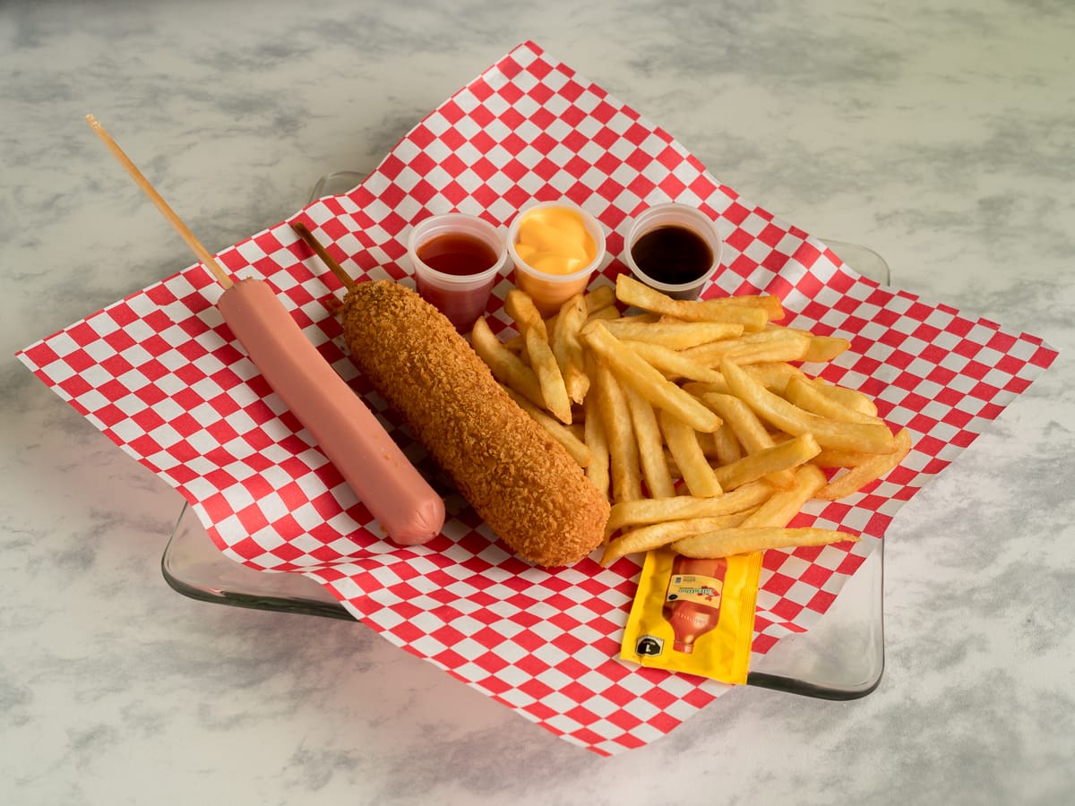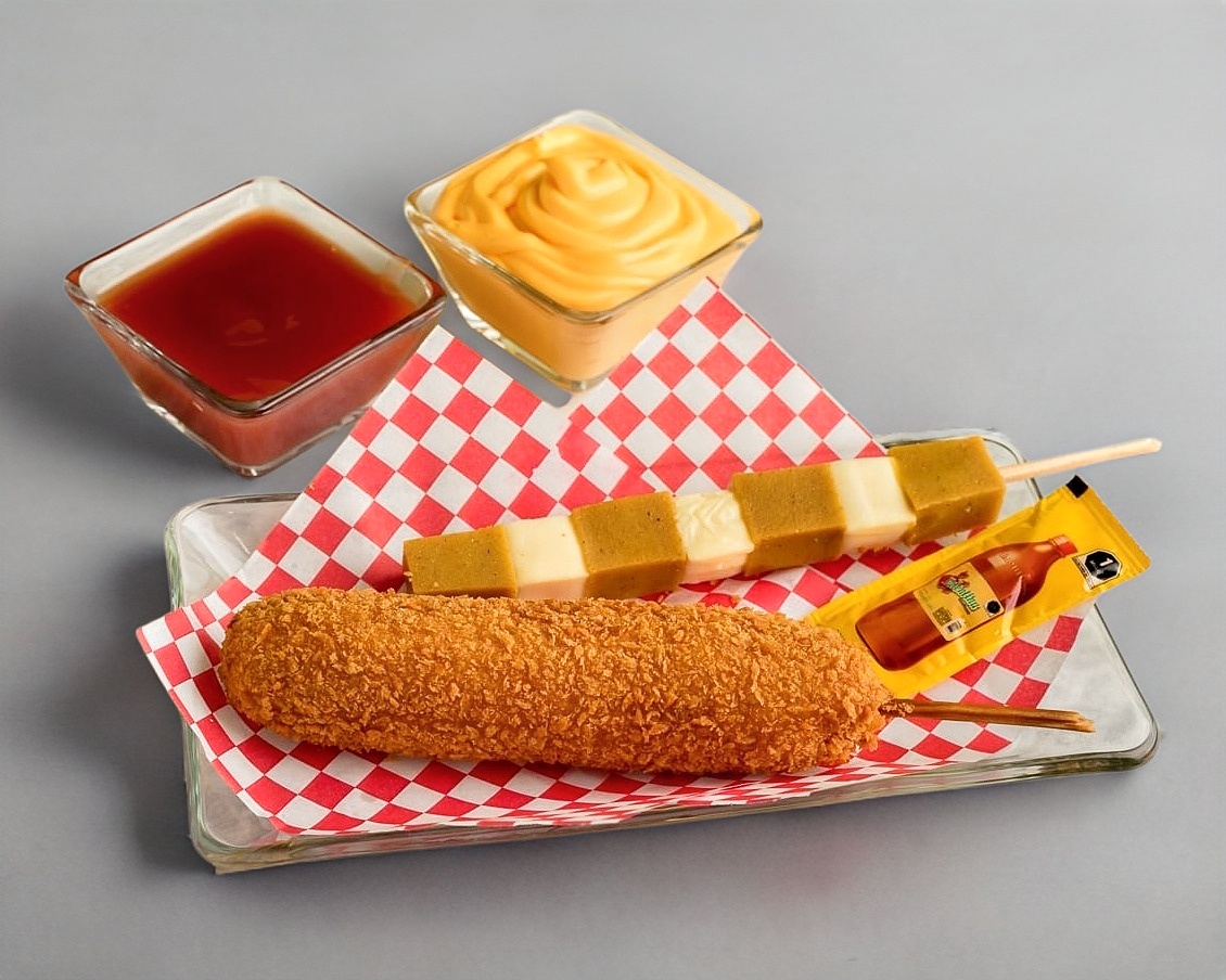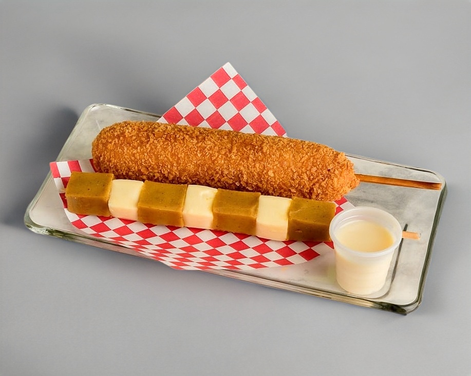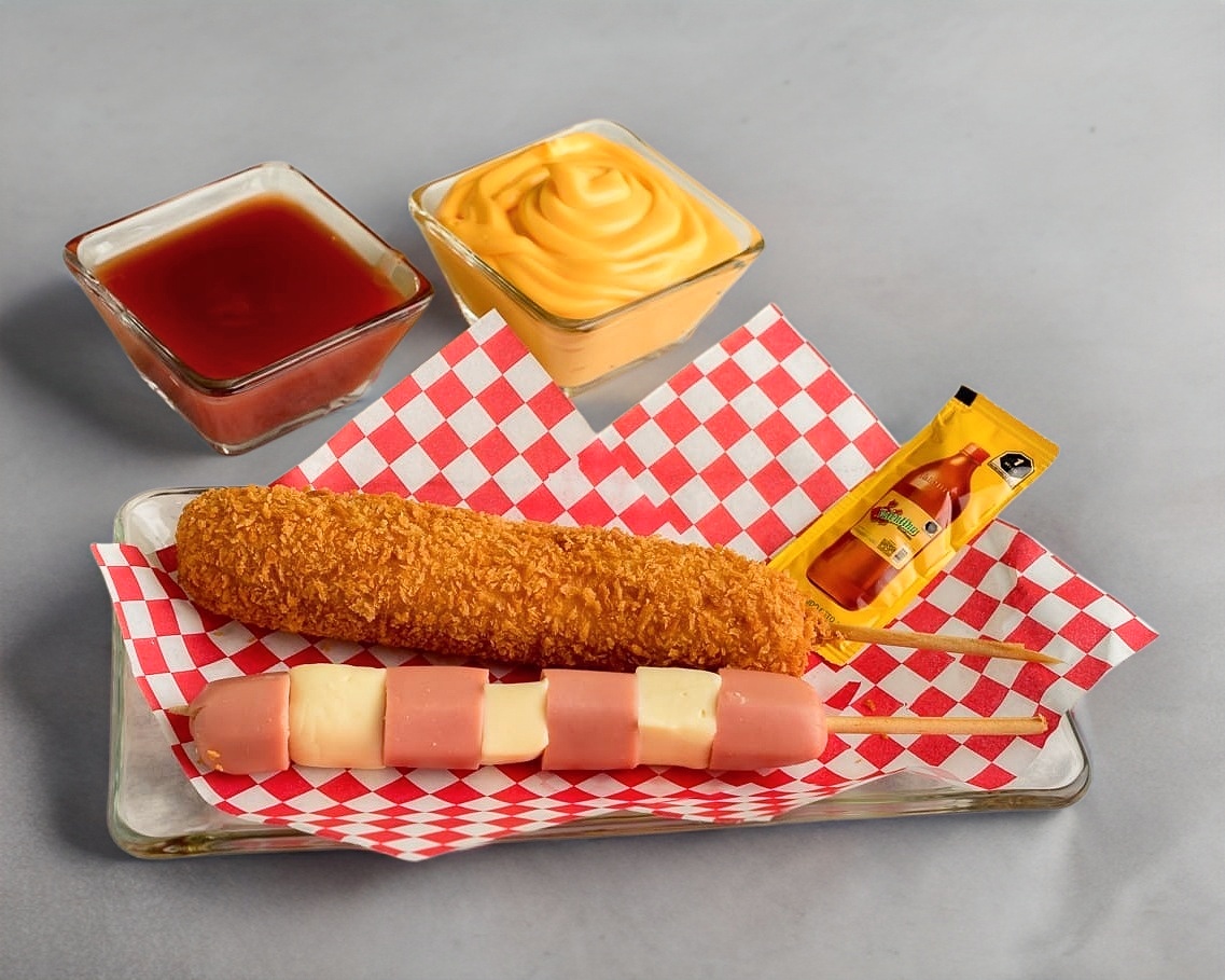 Banderilla estilo coreano con la mejor combinación mitad salchicha y mitad queso.